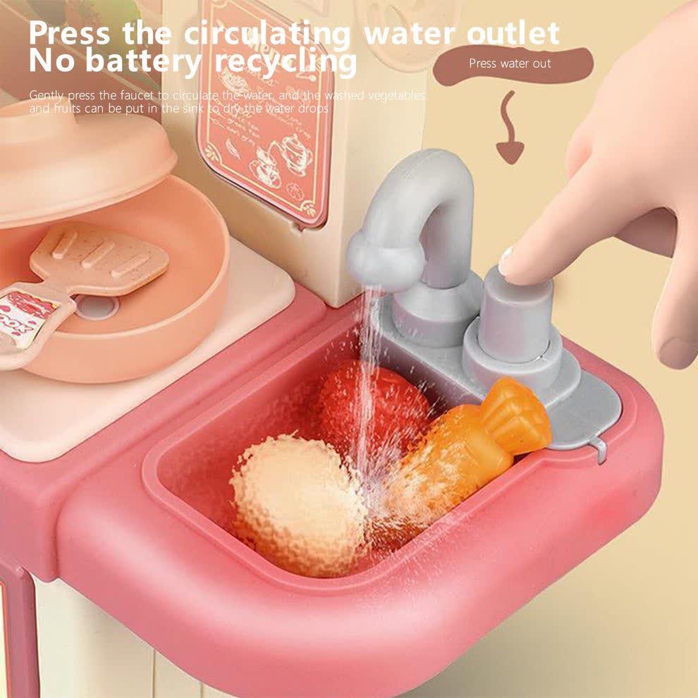 یکی از برجستهترین ویژگیهای ست آشپزخانه Inbealy Dream Kitchen، سیستم چرخش آب در سینک ظرفشویی آن است. با پر کردن مخزن، کودک میتواند واقعاً ظروف را زیر شیر آب بشوید که این موضوع جذابیت بازی را دوچندان میکند. همچنین اجاق گاز این ست دارای دکمههایی است که با چرخاندن آنها، صداهای واقعی پختوپز (مانند سرخ کردن یا جوش آمدن آب) به همراه نورهای قرمز رنگ شبیه به شعله پخش میشود.