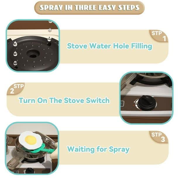 - شبیهساز بخار سرد: با ریختن مقدار کمی آب در محل مخصوص روی اجاق، بخار سردی خارج میشود که کاملاً بیخطر بوده و حس پختوپز واقعی را القا میکند.