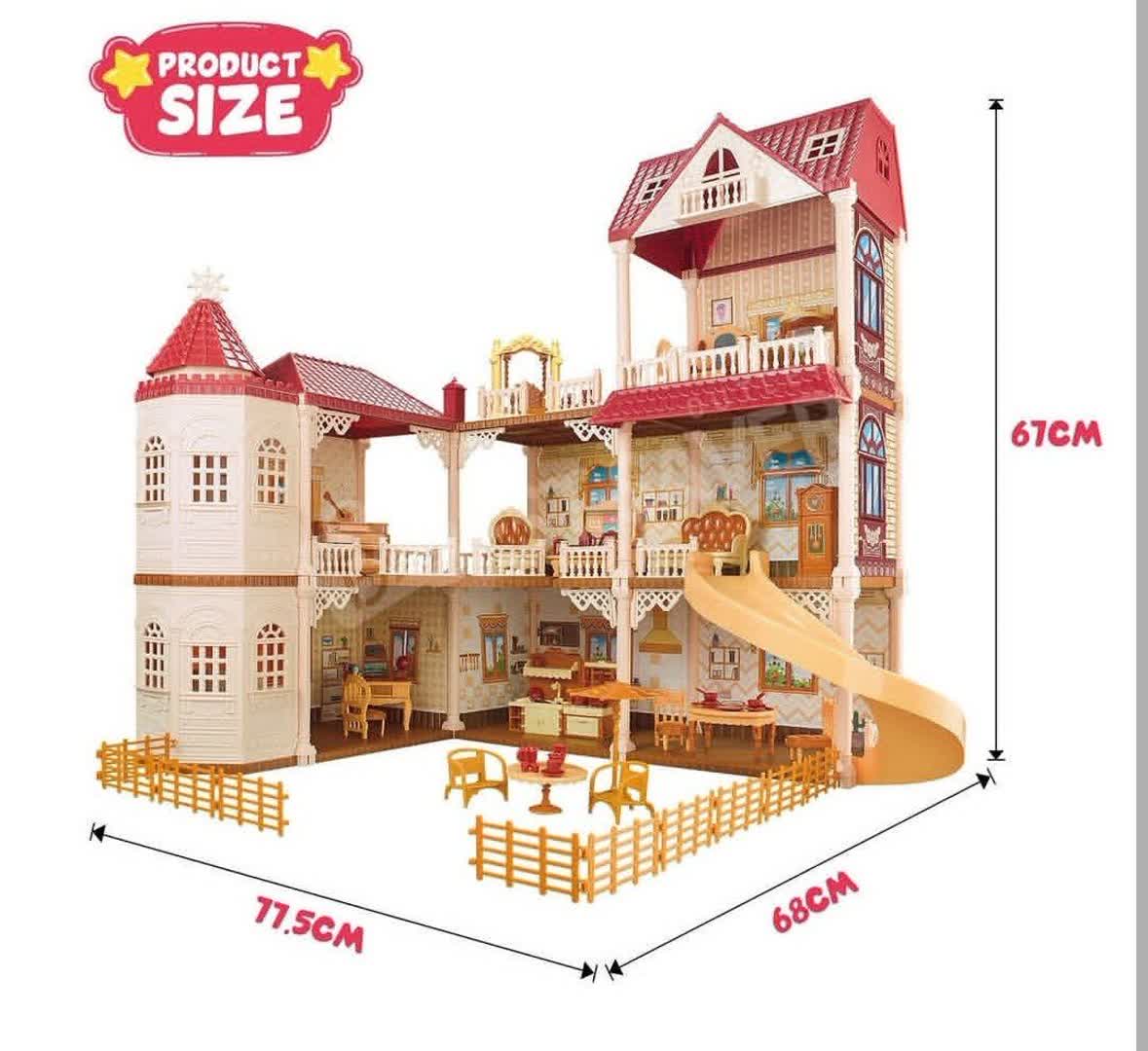 این ویلا دارای چندین بخش مجزا از جمله اتاق خواب، آشپزخانه، بالکنهای متعدد و حتی یک سرسره بزرگ برای عروسکهاست. بدنه اصلی محصول از پلاستیک باکیفیت و ایمن ساخته شده که به راحتی توسط کودک قابل سرهمبندی است. ابعاد نهایی این سازه پس از ساخت، حدود ۷۷.۵ در ۶۸ سانتیمتر با ارتفاع خیرهکننده ۶۷ سانتیمتر است که آن را به یکی از بزرگترین عمارتهای اسباببازی در رده خود تبدیل میکند.