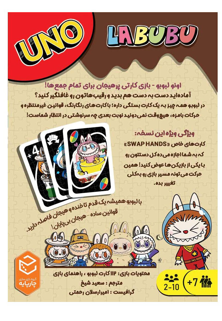 بازی اونو لبوبو UNO Labubu نسخهای ایرانی و خلاقانه از بازی مشهور UNO است که با حفظ هسته اصلی قوانین، هیجان بیشتری به بازی اضافه کرده است. هدف بازی مانند نسخه کلاسیک، خالی کردن دست کارتها در سریعترین زمان ممکن است؛ اما حضور کارتهای ویژه باعث میشود هیچ دوری قابل پیشبینی نباشد.