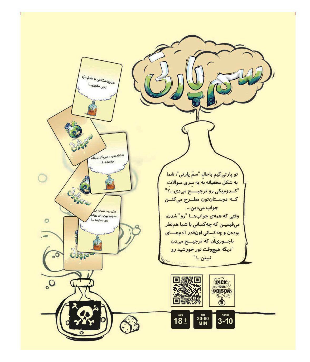 این نسخه توسط گروه Bee Games تولید شده و با حفظ هسته اصلی بازی خارجی Pick Your Poison، محتوایی متناسب با فضای دورهمیهای ایرانی ارائه میدهد.