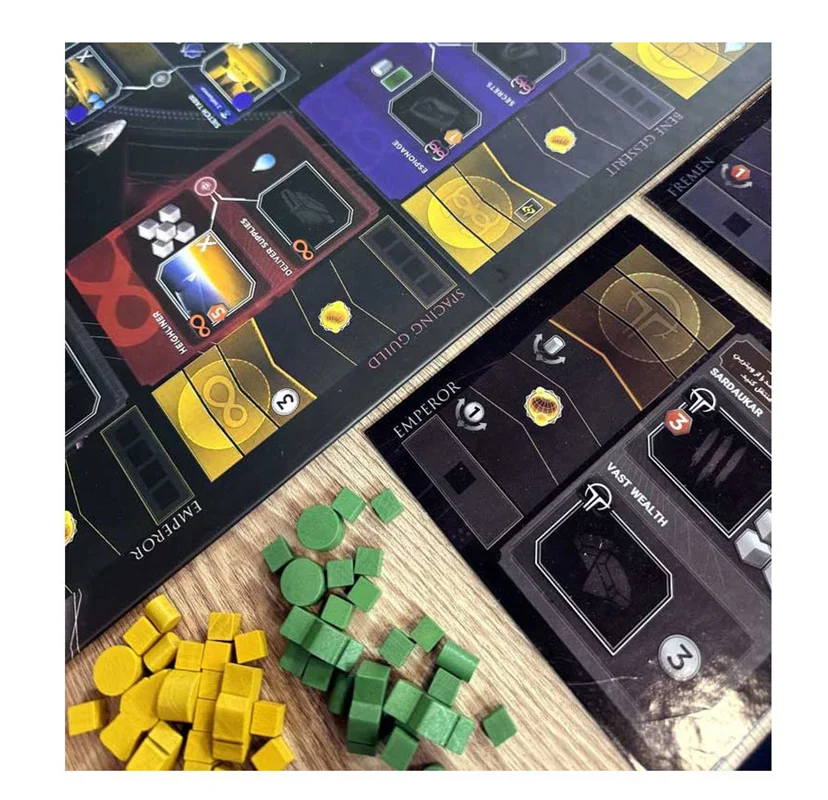 - کارگرگذاری (Worker Placement): بازیکنان جاسوسها و عوامل خود را در نقاط مختلف Arrakis یا ساختارهای سیاسی امپراتوری قرار میدهند تا منابع، قدرت و اتحاد به دست آورند.