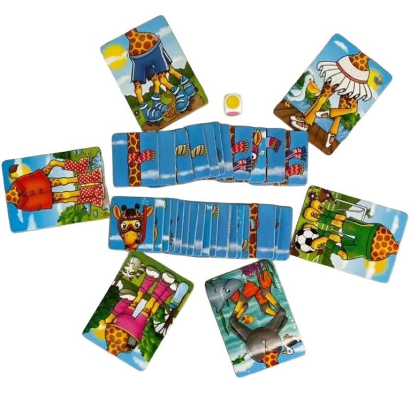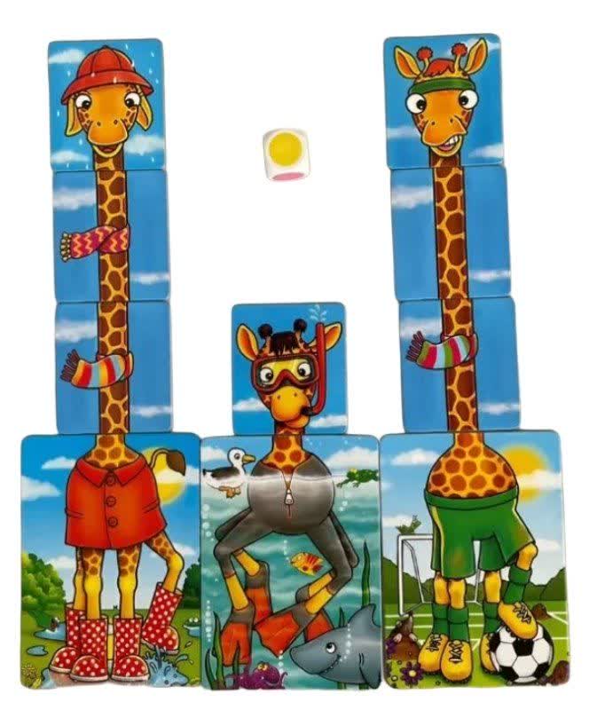 تطبیق و چیدمان: بازیکن باید کارتی را پیدا کند که رنگ شال‌گردن آن با تاس همخوانی دارد. در صورت انتخاب درست، کارت گردن به بدن زرافه اضافه می‌شود.