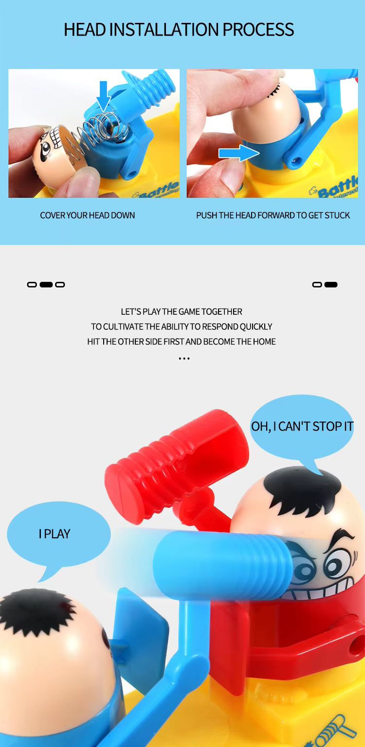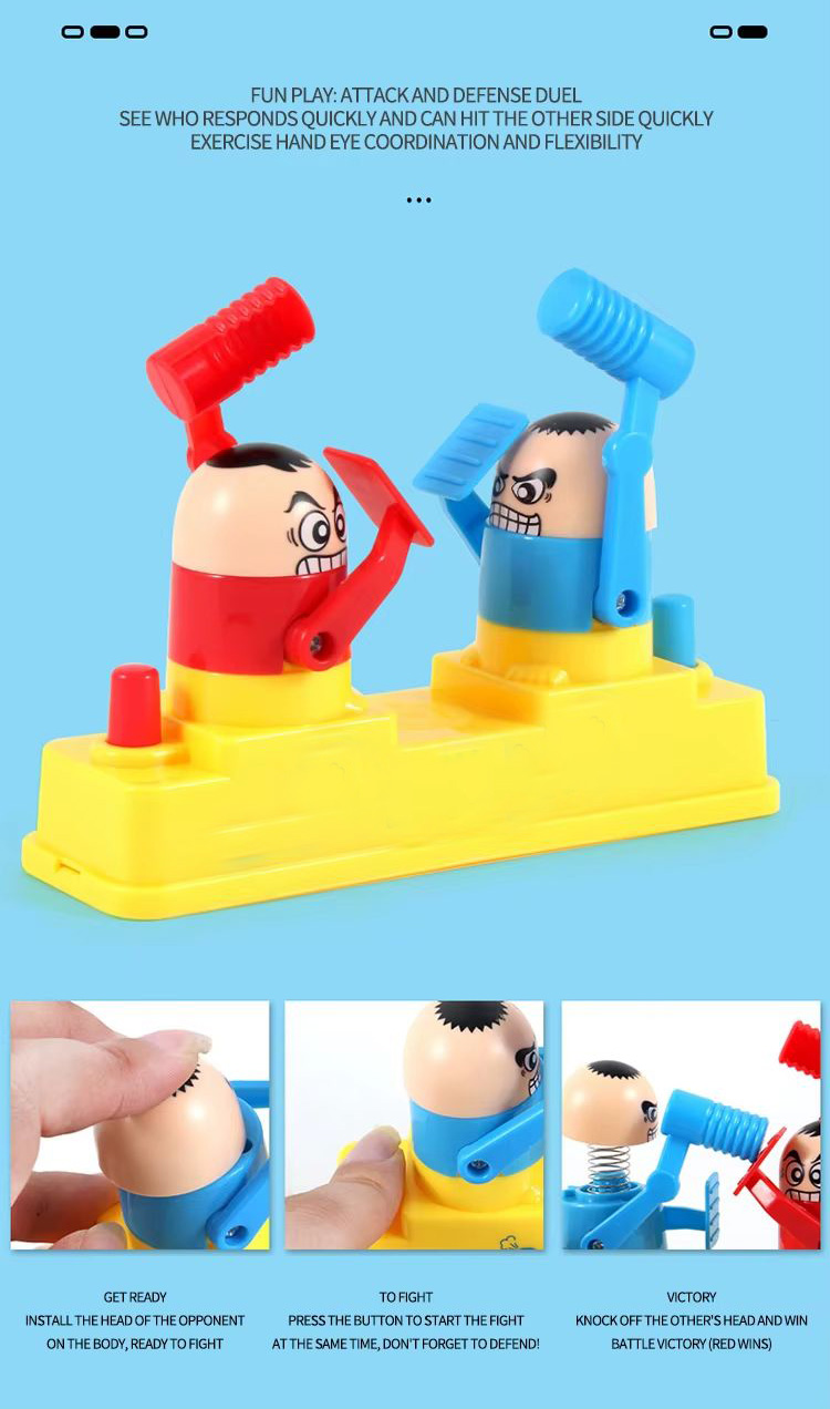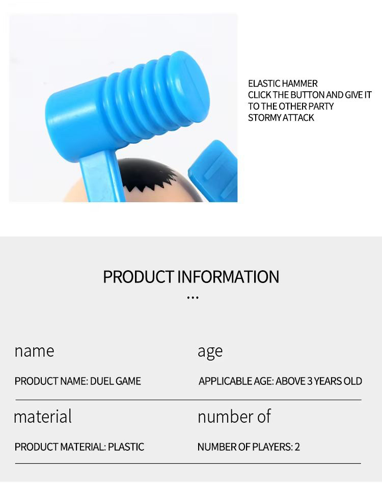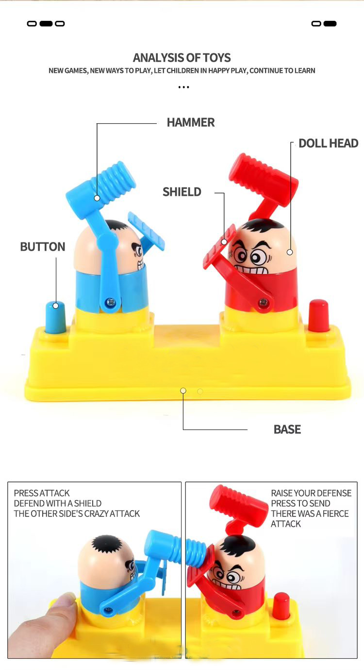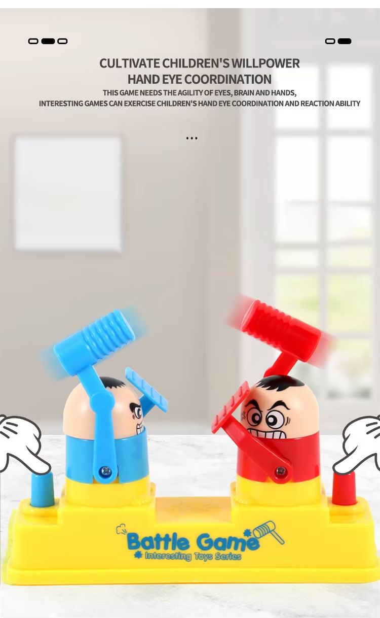 بازی نبرد چکشی Battle VS Game 3227A یک بازی مهارتی و رقابتی است که برای ۲ نفر طراحی شده و مناسب برای سنین ۶ سال به بالا میباشد. در این بازی، هر بازیکن با استفاده از چکش فنری به سمت سر دیگری می زند. این بازی علاوه بر سرگرمی، باعث تقویت هماهنگی دست و چشم، تمرکز و سرعت عمل میشود.