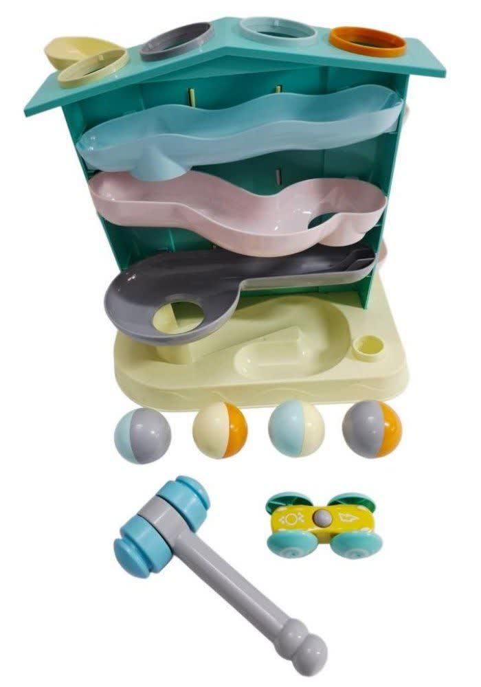 بازی چکش و سرسره Bang And Roll 07 با طراحی خلاقانه، چندین بازی را در یک مجموعه جمع کرده است: یک چکش نرم و ایمن سیلیکونی، توپ‌های رنگی جغجغه‌ای، یک مسیر ریسینگ برای حرکت و غلتیدن توپ‌ها و یک سرسره ماشین هیجان‌انگیز. کودک با کوبیدن چکش روی توپ‌ها و تماشای حرکت آن‌ها در مسیرهای مارپیچ، هماهنگی چشم و دست، تمرکز و مهارت‌های حرکتی ظریف خود را تقویت می‌کند. بنگ رول نه تنها سرگرم‌کننده است، بلکه یک ابزار آموزشی مؤثر برای رشد شناختی و حسی-حرکتی کودکان نوپا محسوب می‌شود. اگر به دنبال یک اسباب‌بازی کامل و چندکاره برای کودک بالای ۱ سال هستید، بازی بنگ رول انتخاب هوشمندانه‌ای است.
