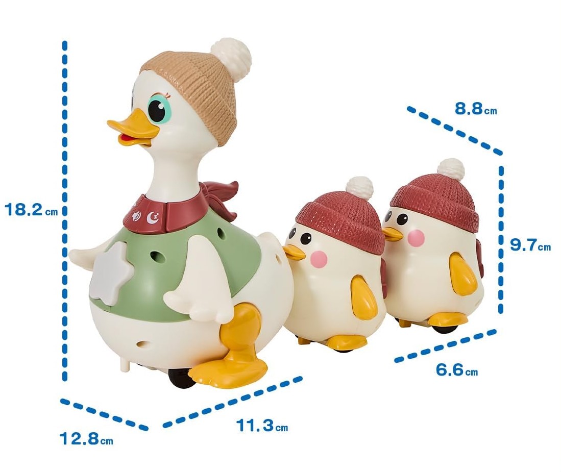 جوجه‌ها با آهنربا به مادر اردک متصل می‌شوند و می‌توانند راه بروند، بچرخند یا جدا شوند، که امکان بازی خلاقانه و تعاملی را فراهم می‌کند.