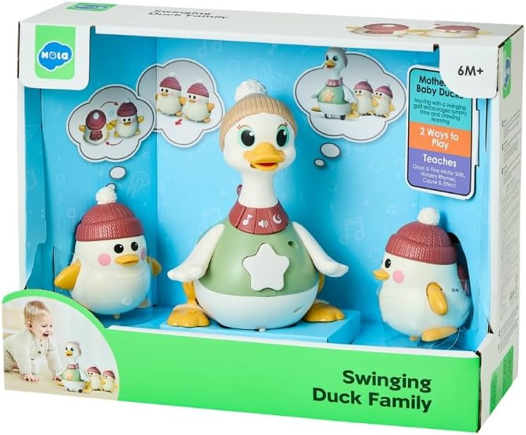 خانواده اردک و جوجه موزیکال هولی تویز سنسور دار مدل Hola Toys Musical Waddling Duck Family HE9987، یک اسباب‌بازی تعاملی و شاد برای بچه‌ها است که ترکیبی از موسیقی، نور و حرکت را در یک محصول دارد. در این مجموعه، مادر اردک راه می‌رود و با فشردن دکمه موزیک، آهنگ‌های شاد پخش می‌کند. جوجه‌ها نیز به‌واسطه آهنربا به مادر متصل‌اند و همراه او حرکت می‌کنند، که این موضوع بازی تخیلی و خلاقانه را برای کودک تقویت می‌کند. سطح صدا قابل تنظیم است تا بتوان آن را متناسب با محیط خواب یا بازی تنظیم کرد. این محصول مناسب کودکان خردسال است و به رشد مهارت‌های حرکتی، تحریک حواس شنیداری و بینایی کمک می‌کند. طراحی ایمن با مواد غیر سمی، مقاومت بالا و دوام برای بازی روزانه، این مجموعه را به انتخابی هوشمندانه برای هدیه یا سرگرمی آموزشی تبدیل می‌کند.