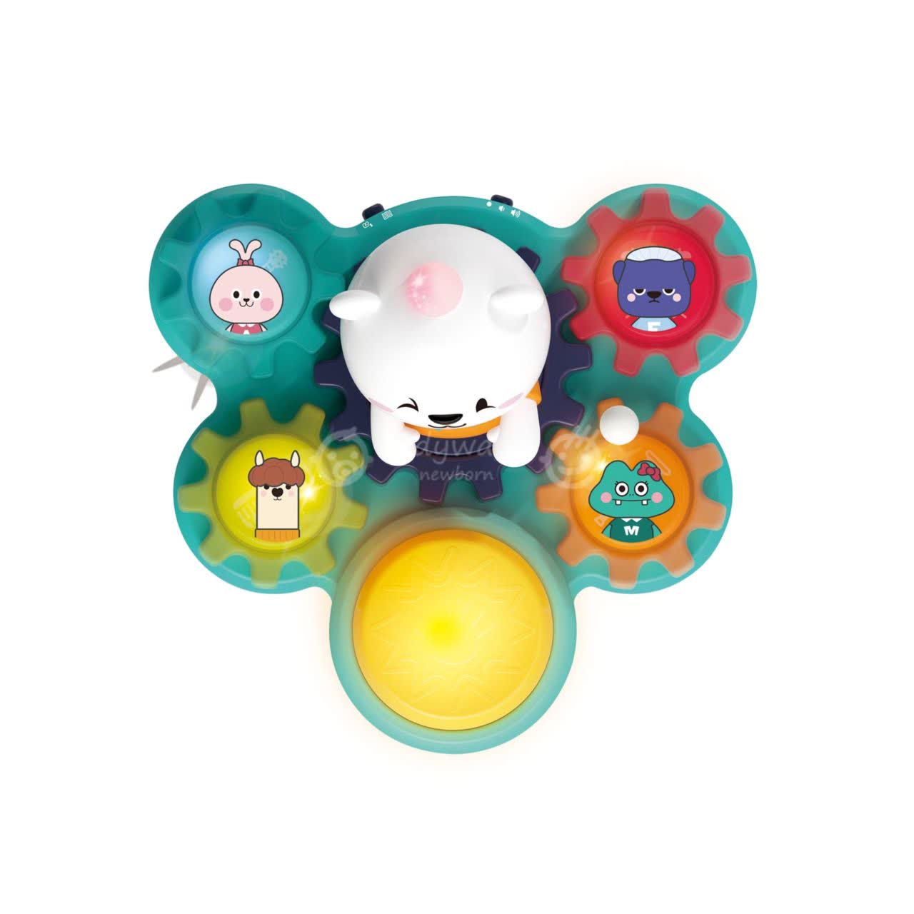 • دنده‌های چرخشی: در کنار خرس، دنده‌های رنگی تعبیه شده که با چرخاندن آن‌ها، هماهنگی میان چشم و دست کودک تقویت می‌شود.