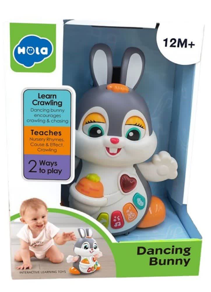 اسباب بازی خرگوش رقاص هالی تویز (Hola Toys Dancing Bunny HE9991) یک سرگرمی عالی و آموزشی برای نوزادان و کودکان 12 ماه به بالا است. خرگوش موزیکال هولی تویز، یک اسباب بازی موزیکال است که به وسیلهی باتری روشن میشود و به جلو و چپ و راست حرکت میکند. هنگام حرکت دستهای خرگوش روشن میشوند و بالا و پایین میروند و همراه آن، چشمهای خرگوش نیز باز و بسته میشوند. حرکت خرگوش، کودک را تشویق میکند که او را دنبال و چهار دست و پا حرکت کند. دکمههای رنگی روی بدن خرگوش ۸ ملودی مختلف به همراه آهنگ پخش میکنند که به برانگیختن حواس شنیداری کودک نیز کمک میکند.