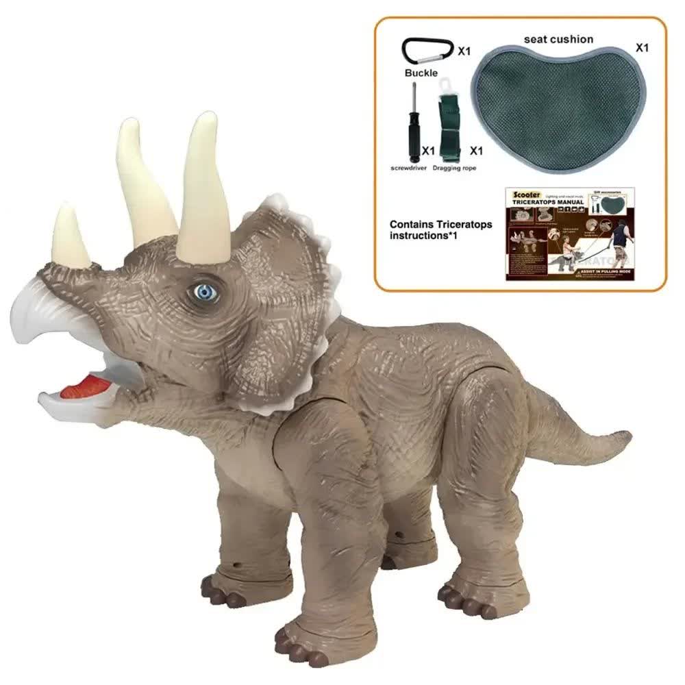 دنیای دایناسورها برای کودکان همیشه پر از رمز و راز بوده است. اسباببازی دایناسور سواری موزیکال و چراغدار طرح دایناسور سه شاخ مدل 6230 به کودک شما اجازه میدهد تا بر پشت یکی از مشهورترین دایناسورهای تاریخ، یعنی تریسراتوپس (Triceratops)، بنشیند و در خانه یا فضای باز به کاوش بپردازد. این محصول، ترکیبی از یک فیگور بزرگ و یک وسیله سواری حرکتی است.