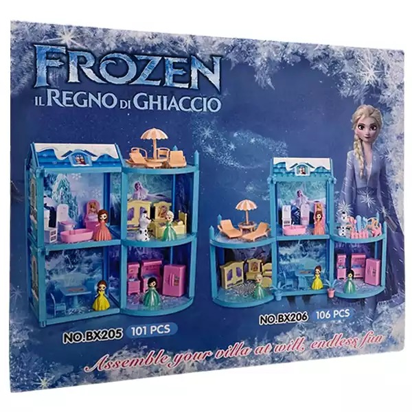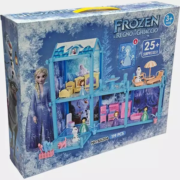 این ست شامل بدنه خانه، مبلمان، و جزئیات ریز خانه شامل برخی از دکوراسیون عروسکی با طرح السا فروزن و عروسک های السا و آنا است.