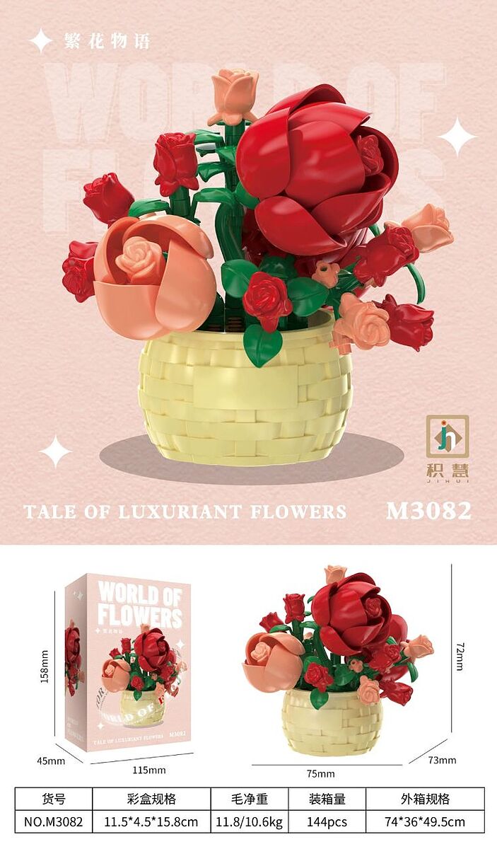 مجموعه لِگو سبد گل رز / Basket Rose Flower M3082 طراحی شده تا با قطعات کوچک و دقیق، سبدی از گل رز خلق کند. هر گل رز شامل گلبرگها، ساقه و برگ است و در نهایت داخل ساختار سبد چیده میشود. ظاهر این محصول شبیه سبد گل طبیعی اما با لمس هنری بلوکی است.