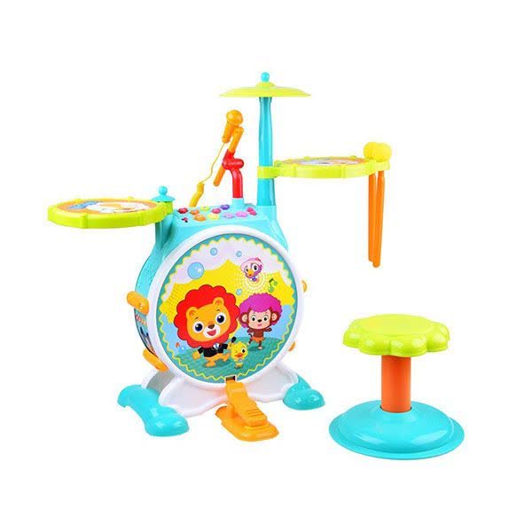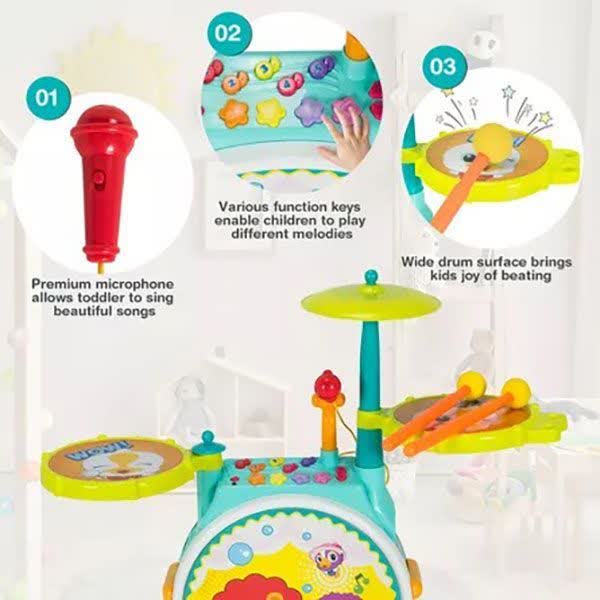 اسباب بازی ست درام جاز هولی تویز (Hola Toys Banging Bopping Drum Set 3130) یک ایستگاه موسیقی کامل و جذاب برای کودکان هنرمند است. این محصول، فراتر از یک اسباب‌بازی ساده بوده و به عنوان یک ابزار آموزشی برای آشنایی با ریتم و موسیقی طراحی شده است. این ست شامل یک درام بزرگ (بدنه اصلی)، دو درام کوچک در طرفین، سنج، پدال پا، میکروفون و یک صندلی مخصوص است که تجربه‌ای واقعی از نوازندگی را به کودک هدیه می‌دهد. نورپردازی‌های رنگی و افکت‌های صوتی متنوع در کنار قابلیت پخش آهنگ‌های پیش‌فرض، این مجموعه را به محبوب‌ترین وسیله برای تقویت اعتماد به نفس و مهارت‌های حرکتی کودکان تبدیل کرده است.