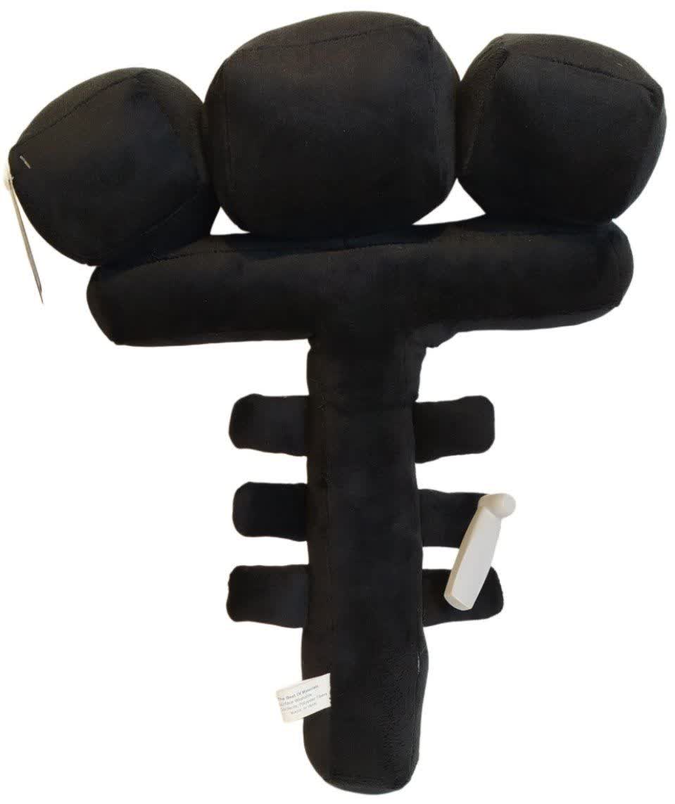 همانطور که در تصاویر محصول مشاهده میکنید، این عروسک دارای سه سر مجزا با چشمان و دهان خاکستری پیکسلی است که با دقت بالایی گلدوزی شدهاند. بدنهی اصلی به شکل یک ستون فقرات پیکسلی طراحی شده که یادآور ساختار اسکلتی ویدر در بازی است. استفاده از رنگ مشکی یکدست و بافت پارچهای خاص، به این عروسک جلوهای مدرن و در عین حال نوستالژیک بخشیده است.