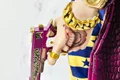این فیگور دارای یک عصای طلایی و بنفش، یک اسلحه کمری طلایی و بنفش، و یک پایه مخصوص نمایش ایستاده است. هر کدام از این آیتمها با جزئیات بسیار بالا طراحی شدهاند. عصا دارای سر خاص و اسلحه دارای طراحی خاص است که حس لوکس و جنونآمیز جوکر را کامل میکند.