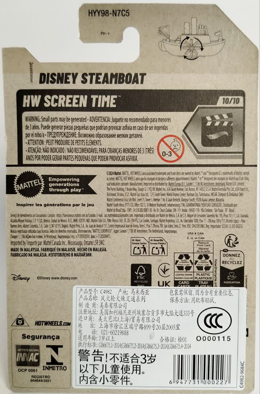 Hot Wheels Disney Steamboat HW Screen Time 10/10 166/250