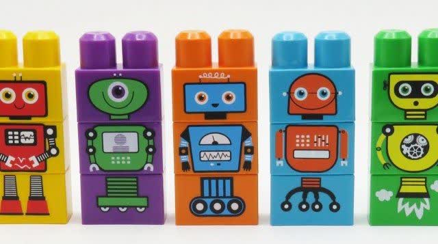 - قطعات شامل اجزای مختلف آدمآهنیها (سر، بدن، پا) در رنگهای متنوع
