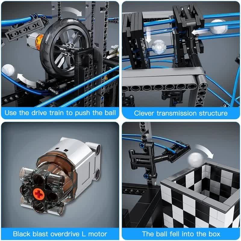 اصلیترین جذابیت لگو ترن هوایی ماربل ران، سیستم انتقال حرکت آن است. این مجموعه شامل چندین ایستگاه لیفت و جابهجایی است که توپها را از پایینترین نقطه به بالاترین ارتفاع ممکن میرساند تا دوباره سفر خود را در مسیرهای پرپیچوخم شروع کنند. استفاده از قطعات با دقت بالا باعث شده تا حرکت توپها روی ریلهای منعطف آبی رنگ بدون کوچکترین وقفه انجام شود.