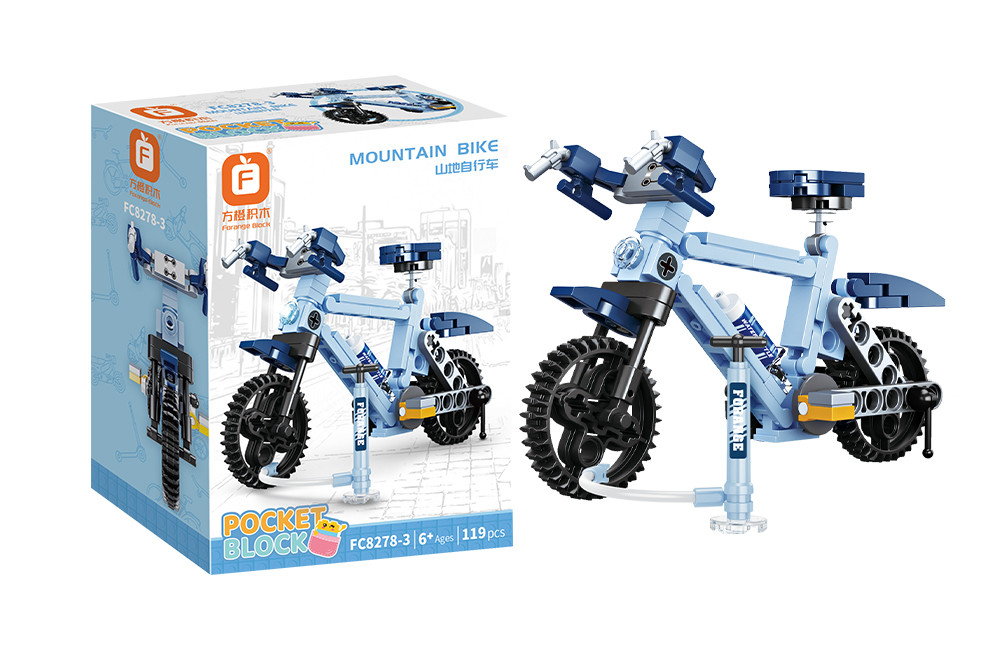 لگو دوچرخه کوهستان آبی Vehicle Mountain Bike FC8278-3 یک مدل جذاب و فانتزی از سری وسایل نقلیه فورنج بلاک است که شامل ۱۱۹ قطعه با رنگ آبی میشود و یک تلمبه لگویی کوچک نیز همراه آن ارائه شده است. طراحی دقیق چرخها، فرمان و بدنه، تجربه مونتاژ و بازی واقعی یک دوچرخه کوهستان کوچک را فراهم میکند. این لگو علاوه بر سرگرمی و بازی، میتواند بهعنوان قطعه دکوری فانتزی روی میز یا ویترین استفاده شود. مونتاژ این مدل باعث تقویت تمرکز، صبر و مهارتهای دستورزی کودکان و بزرگسالان میشود و تجربه آموزشی همراه با تفریح را ارائه میدهد.