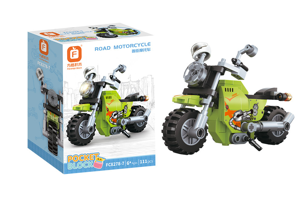 اگر از علاقهمندان به وسایل نقلیه هستید و از ساخت مدلهای لگویی لذت میبرید، لگو موتورسیکلت جادهای Forange Block Road Motorcycle FC8278-7 گزینهای فوقالعاده برای شماست. این محصول با 111 قطعه استاندارد طراحی شده و به شما اجازه میدهد یک موتورسیکلت خوشساخت و زیبا را مرحلهبهمرحله بسازید؛ تجربهای که هم سرگرمکننده است و هم حس خلاقیت و تمرکز را تقویت میکند. همچنین استفاده از رنگ های شاد همانند سبز و قرمز در ساخت این محصول، به بالا بردن روحیه کودک شما کمک میکند.
