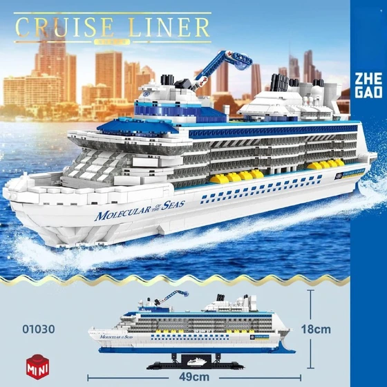 این کشتی پس از تکمیل، ابعادی معادل ۴۹ سانتیمتر طول و ۱۸ سانتیمتر ارتفاع خواهد داشت. ترکیب رنگی سفید و آبی بدنه در کنار جزئیات زرد رنگ قایقهای نجات، جلوهای بسیار لوکس به آن بخشیده است. نام Molecular of the Seas با فونتی زیبا در قسمت جلویی بدنه خودنمایی میکند که یادآور کشتیهای کروز واقعی در کلاس جهانی است.