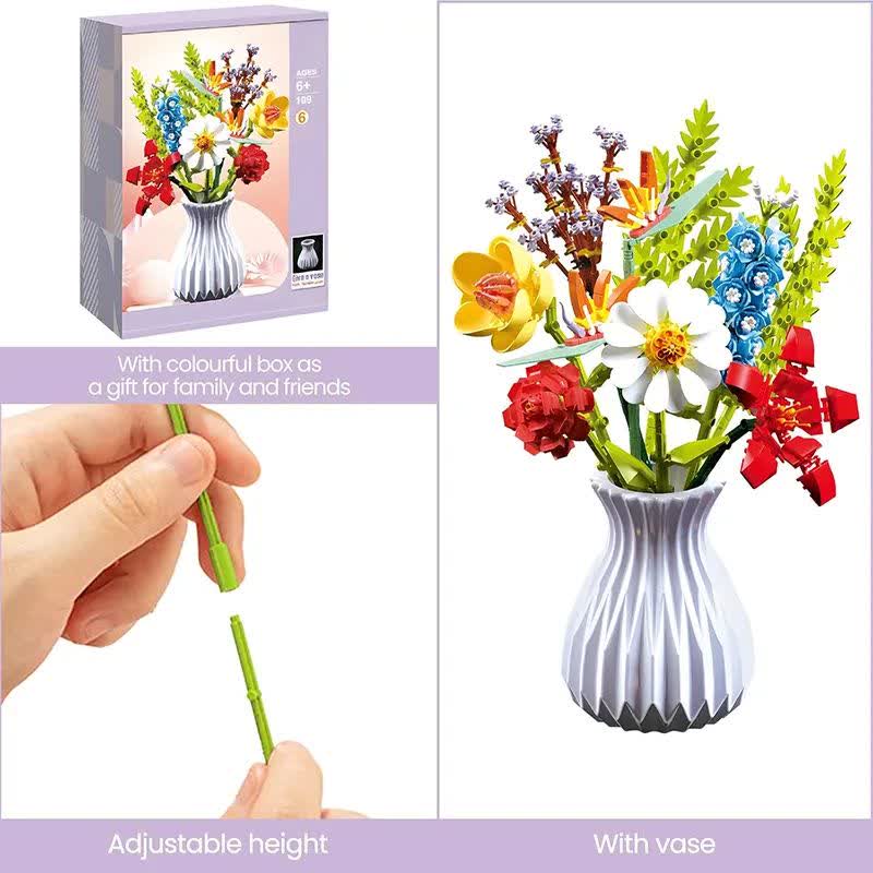 این مجموعه به کودکان میآموزد که چگونه با استفاده از بلوک های ساختمانی، اجسام سهبعدی زیبا و کاربردی خلق کنند. پس از ساخت، گلدان و گلهای ساخته شده میتوانند به عنوان یک وسیله تزئینی در کتابخانه، میز مطالعه یا اتاق کودک قرار گیرند. همچنین به دلیل قابلیت جدا شدن و چیدمان مجدد، کودک میتواند بارها و بارها آن را بازسازی کند.