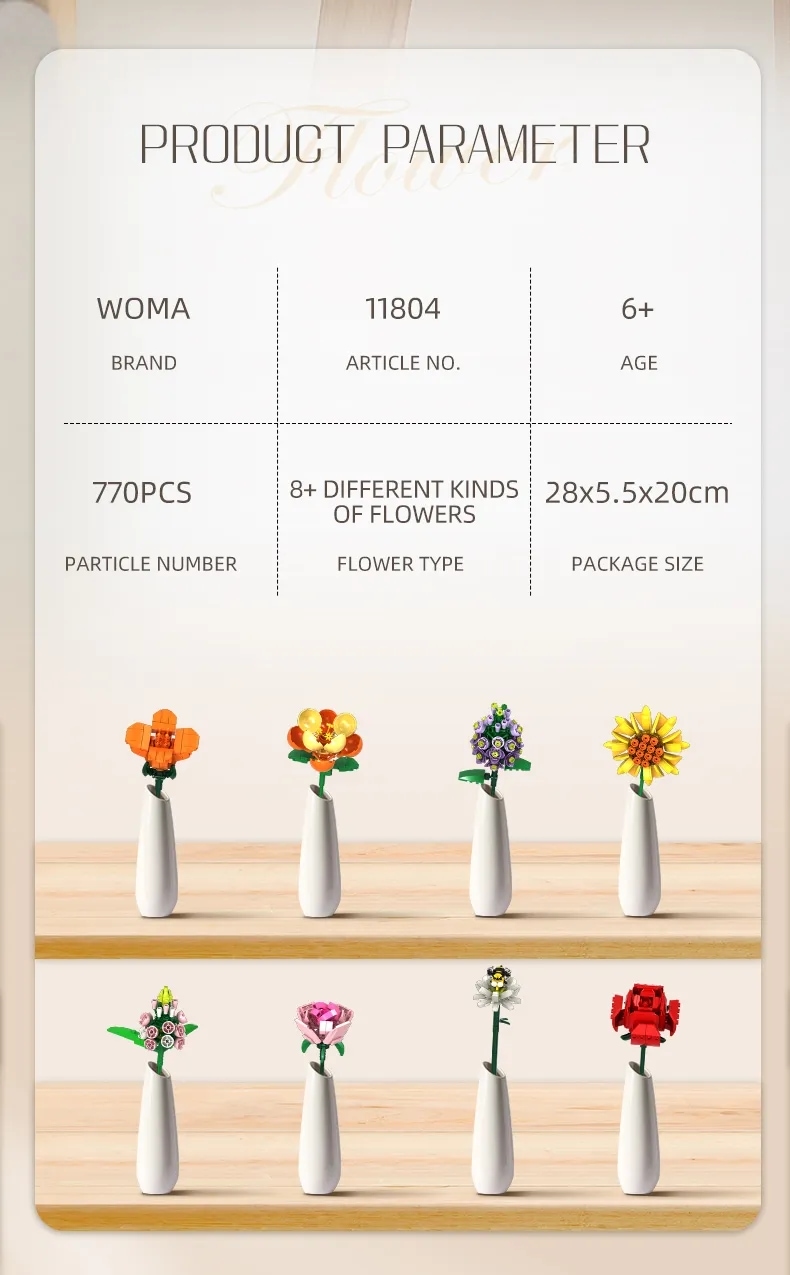 لگو گلدان خوشه‌های گل یک محصول خاص و خلاقانه از برند معتبر Woma است که تجربه‌ای متفاوت از بازی و دکور را به کودکان و حتی بزرگسالان ارائه می‌دهد. این مجموعه شامل بیش از ۷۷۰ قطعه‌ی ساختنی است که به کاربران این امکان را می‌دهد تا بیش از ۸ نوع گل مختلف را با رنگ‌ها و اشکال متنوع طراحی و خلق کنند.