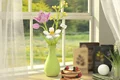 - گلدان سبز مدرن: طراحی ساده اما شیک که با رنگ گلها هماهنگی کامل دارد.