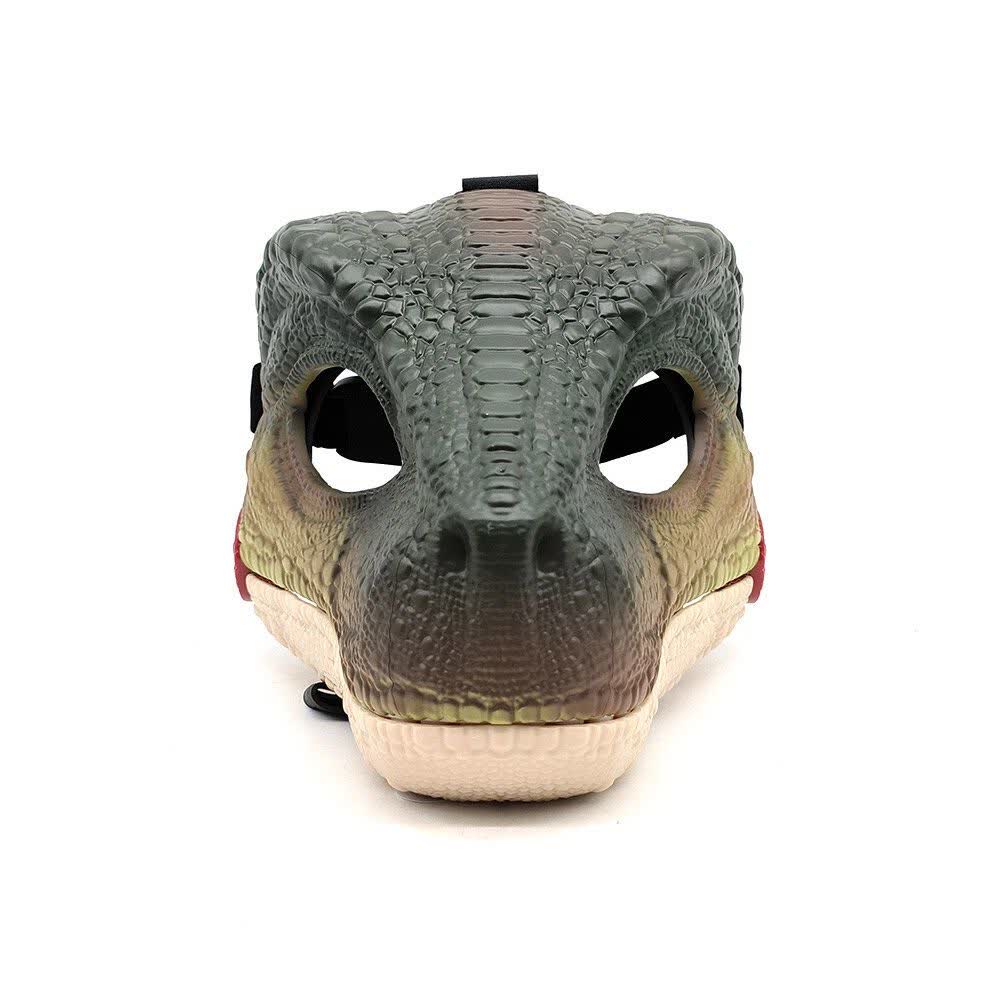 سازندگان این ماسک دایناسور در طراحی مدل WS5502B به جزئیات بافت پوست و رنگآمیزی دایناسور بسیار اهمیت داده است. بافت برجسته و رنگ سبز-زیتونی ترکیبی با کرم، ظاهری بسیار طبیعی به این ماسک بخشیده است. ابعاد ماسک (ارتفاع ۱۷، عرض ۲۰ و طول ۲۲ سانتیمتر) به گونهای مهندسی شده که به خوبی روی سر کودکان قرار گیرد و زاویه دید مناسبی را از طریق حفرههای چشم فراهم کند. متریال پلاستیک به کار رفته در این محصول از نوع مقاوم و فاقد لبههای تیز است تا ایمنی کودک در حین بازی تضمین شود.
