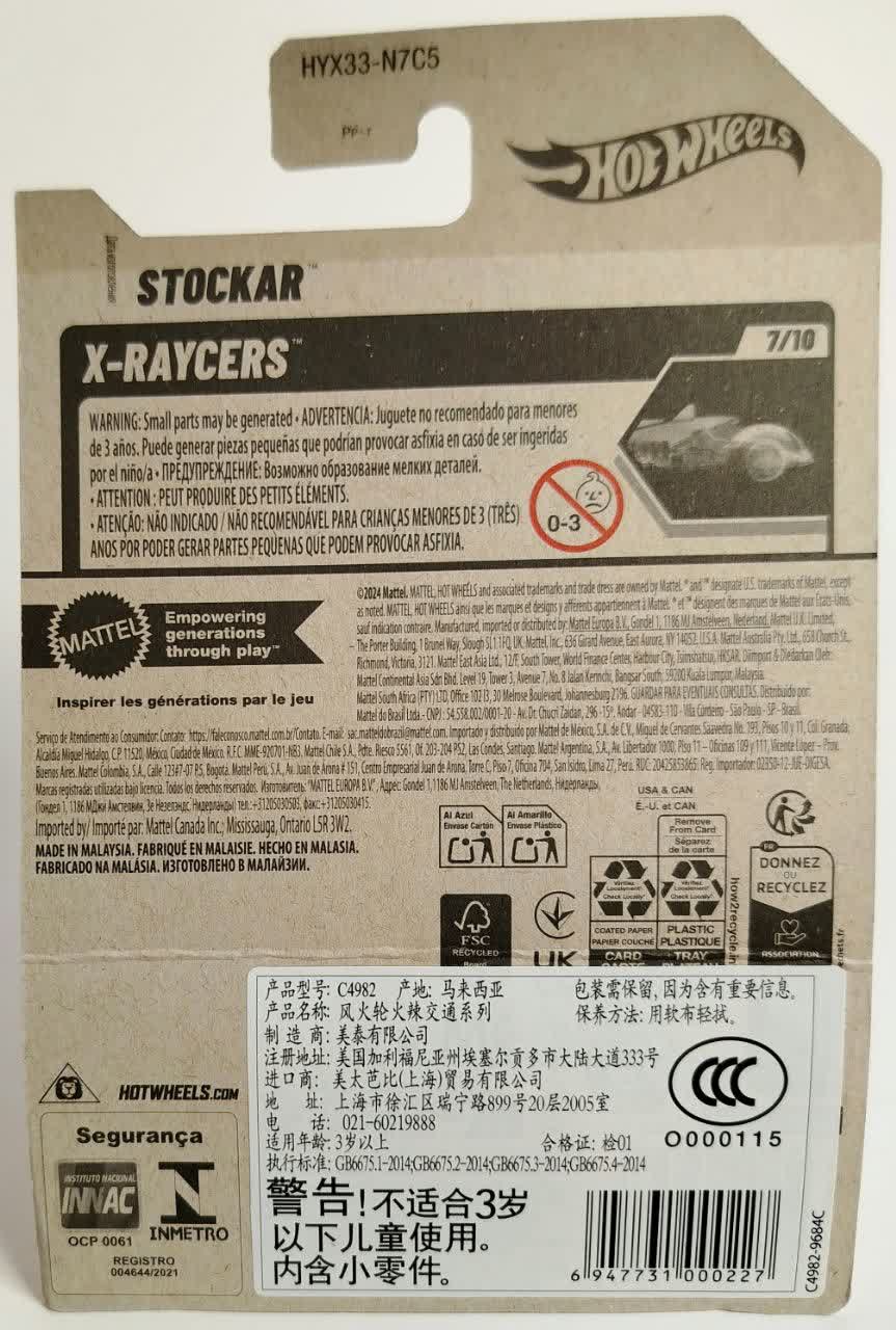 این مدل شماره ۷ از ۱۰ در سری X-Raycers است. فلسفه این سری، نمایش تکنولوژی و سرعت از طریق بدنههای شفاف است. استوکار در این سری به عنوان نماینده خودروهای پیست بیضی (Oval Track) حضور دارد. وقتی این ماشین در مقابل نور قرار میگیرد یا از مسیرهای نورانی پیست عبور میکند، مانند یک جواهر متحرک میدرخشد.