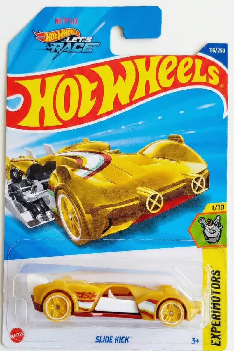 سری Experimotors یکی از محبوبترین خطوط تولید هات ویلز است، زیرا این ماشینها فراتر از یک ماکت ثابت هستند و قابلیتهای حرکتی (Functional Features) دارند. مدل Slide Kick ستاره شماره یک این سری در سال ۲۰۲۵ است که با طراحی آیندهنگرانه و قابلیت مکانیکی خود، توجهها را جلب میکند.
