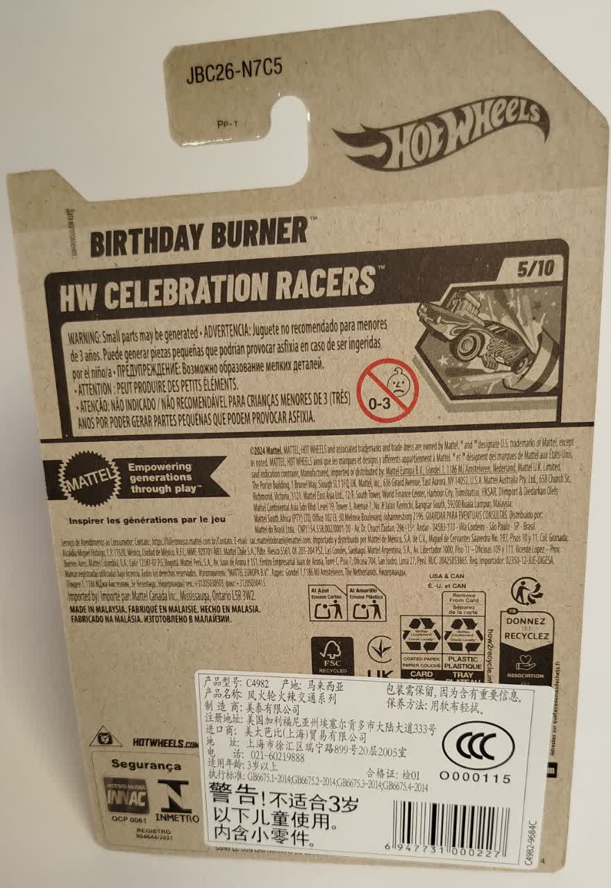 این مدل شماره ۵ از ۱۰ در سری HW Celebration Racers است. این سری به ماشینهایی اختصاص دارد که نماد جشنها و تعطیلات مختلف سال (مانند سال نو، هالووین و تولد) هستند. برثدی برنر با گرافیک زیبای "Happy Birthday" و لوگوی هات ویلز که با خامه نوشته شده، ستاره درخشان این مجموعه است.