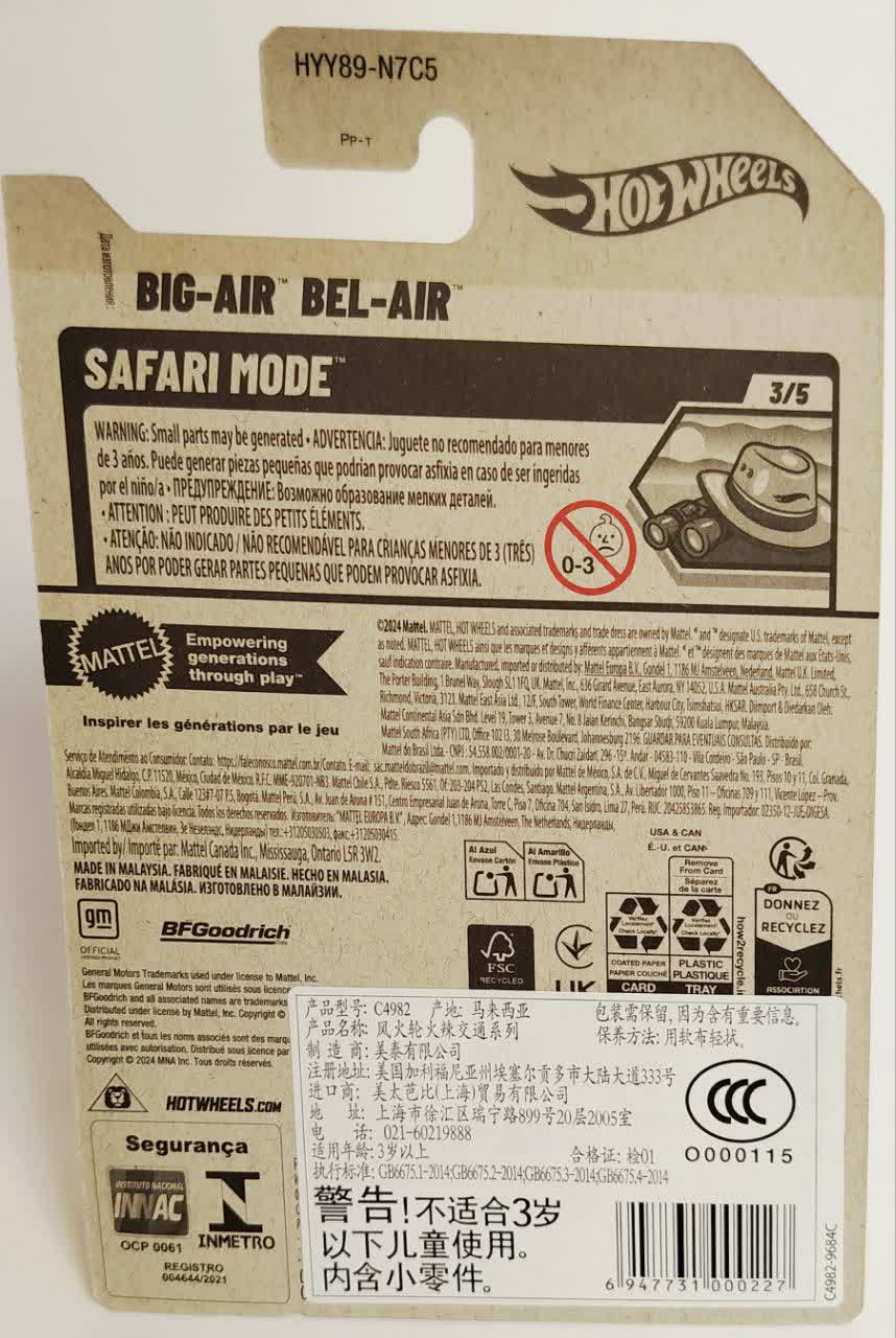 این مدل شماره ۳ از ۵ در سری Safari Mode است. این سری جدید و جذاب به خودروهایی اختصاص دارد که برای سفرهای اکتشافی (Safari) و عبور از مسیرهای صعبالعبور مجهز شدهاند. لوگوی این سری با کلاه جهانگردی و دوربین شکاری، حس ماجراجویی را القا میکند. بیگ-ایر بل-ایر با این استایل، پادشاه بیابانهای این سری است.