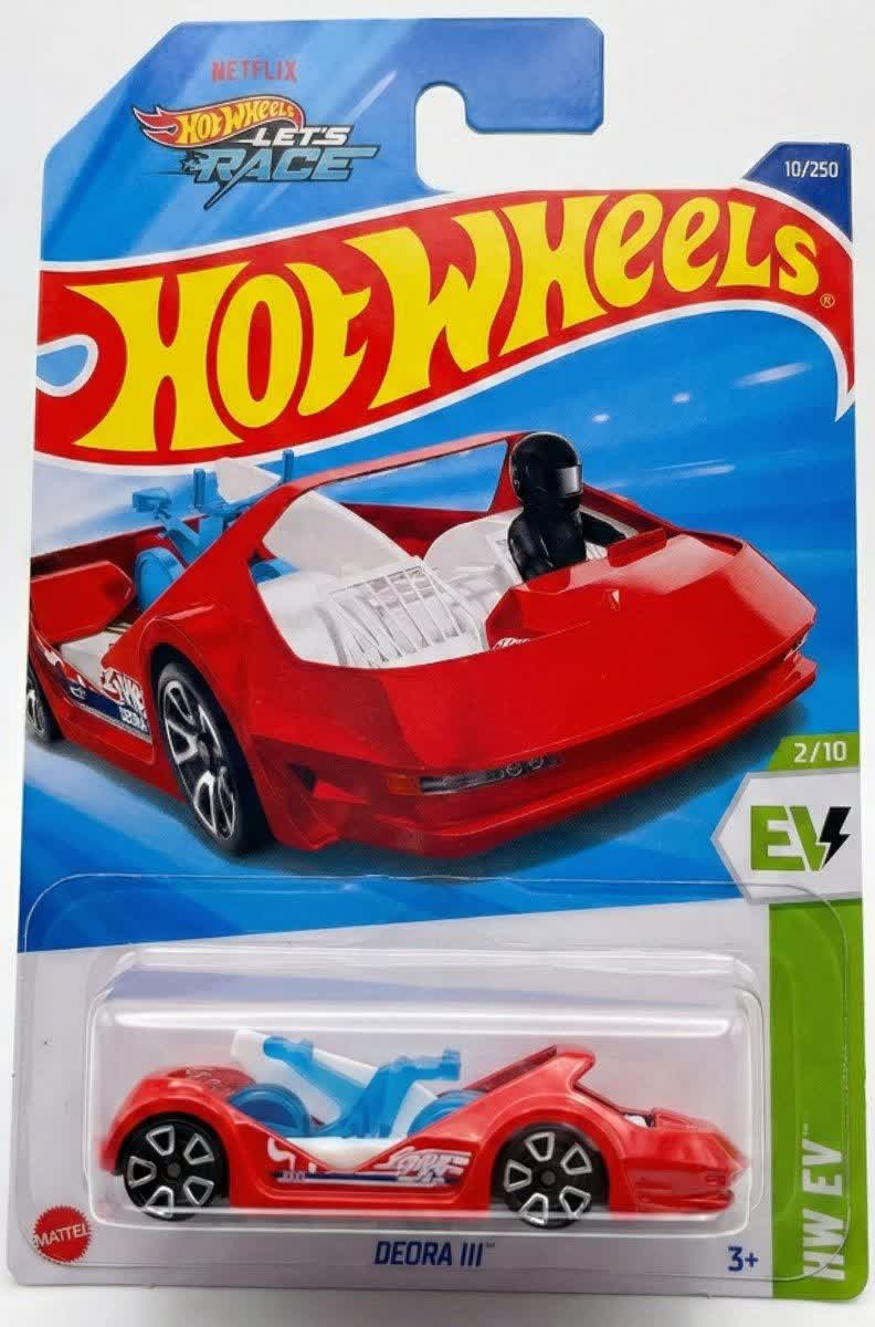 ماشین فلزی هات ویلز دئورا 3 Deora III سومین نسل از یکی از مشهورترین طراحیهای تاریخ هات ویلز است که اکنون با قلبی الکتریکی بازگشته است. این محصول با کد کلکسیونی ۱۰/۲۵۰ و به عنوان دومین مدل از سری ۱۰ تایی HW EV در سال ۲۰۲۵ عرضه شده است.طراحی دئورا ۳ با حفظ روحیه اجدادش (حمل تخته موجسواری و طراحی کابین جلو)، نگاهی جسورانه به آینده دارد. بدنه این ماشین با رنگ قرمز و جزئیات سفید و آبی طراحی شده است. برخلاف مدلهای قدیمی، این نسخه دارای کابین کاملاً باز و دوچرخهای برقی (E-Bike) در قسمت بار است که جایگزین تختههای موجسواری سنتی شده است. وجود لوگوی انیمیشن "Netflix Let's Race" روی بستهبندی، نشان میدهد که این اسطوره مدرن برای نسل جدید کودکان نیز شناخته شده است.