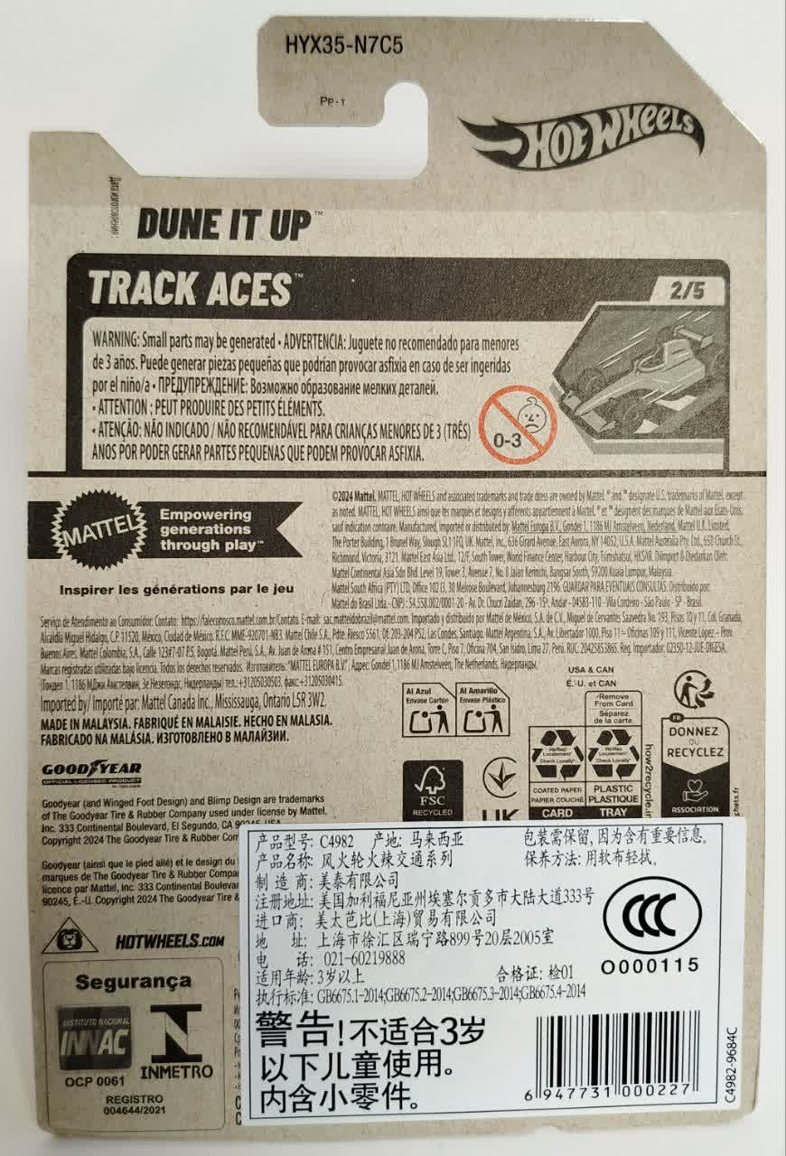 این مدل شماره ۲ از ۵ در سری Track Aces است. برخلاف اکثر ماشینهای آفرود که چرخهای بزرگ و اصطکاک زیادی دارند، Dune It Up در این سری به گونهای طراحی شده که با وجود ظاهر خشن، در پیستهای هات ویلز گیر نکند و سرعت بالایی داشته باشد. باله عقب بزرگ و دماغه رو به پایین، به آیرودینامیک آن در سرعتهای بالا کمک میکنند.