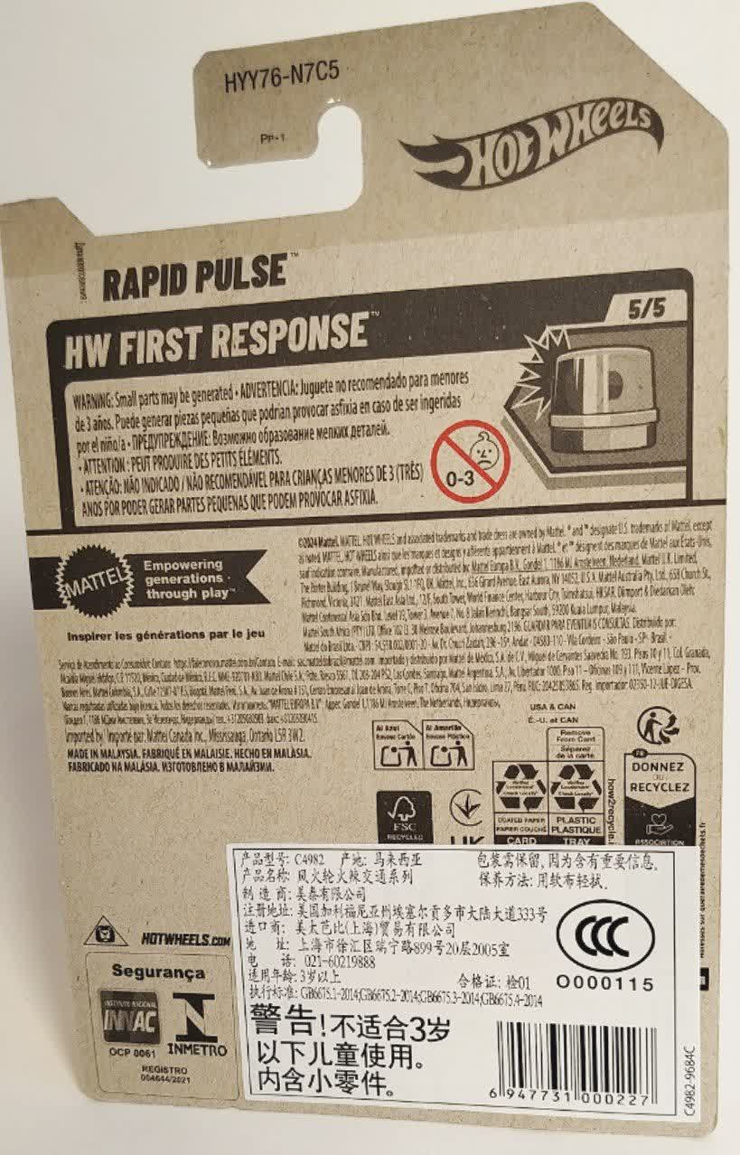 این ماشین شماره ۵ از ۵ در سری HW First Response است؛ سریای که به خودروهای پلیس، آتشنشانی و امداد اختصاص دارد. تکمیل کردن این سری بدون داشتن رپید پالس امکانپذیر نیست. علاوه بر این، لوگوی "Netflix Let's Race" در گوشه بالای کارت نشان میدهد که این مدل بخشی از ناوگان انیمیشن محبوب نتفلیکس است و کودکان میتوانند صحنههای کارتون را با آن بازسازی کنند.