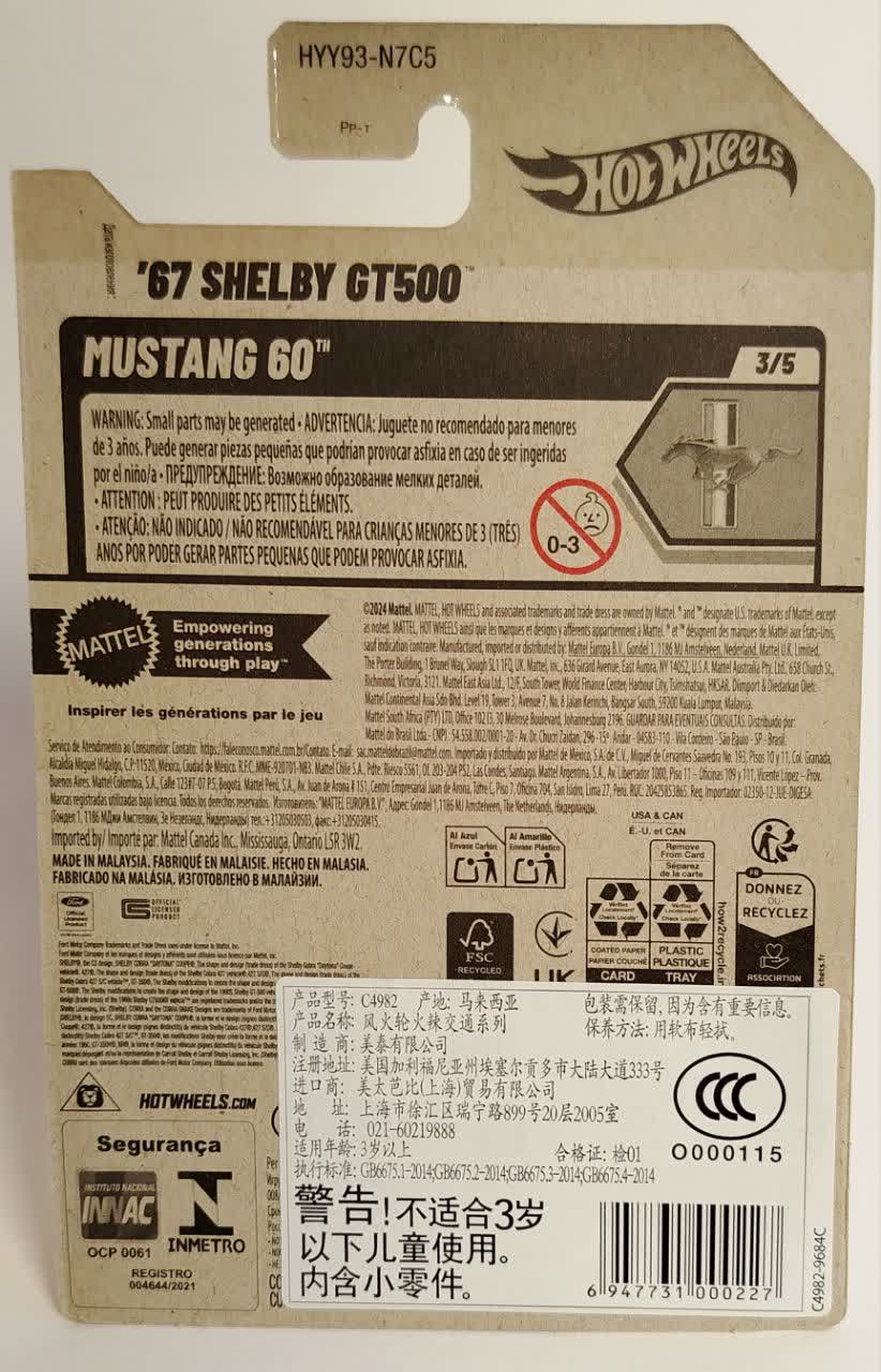 این مدل شماره ۳ از ۵ در زیرمجموعه Mustang 60th است. هات ویلز این سری را برای گرامیداشت شش دهه تولید مداوم فورد موستانگ منتشر کرده است. لوگوی عمودی "MUSTANG 60th" با رنگ قرمز در حاشیه سمت راست کارت بستهبندی، این نسخه را از سایر مدلهای معمولی متمایز میکند و ارزش کلکسیونی آن را به شدت افزایش میدهد.