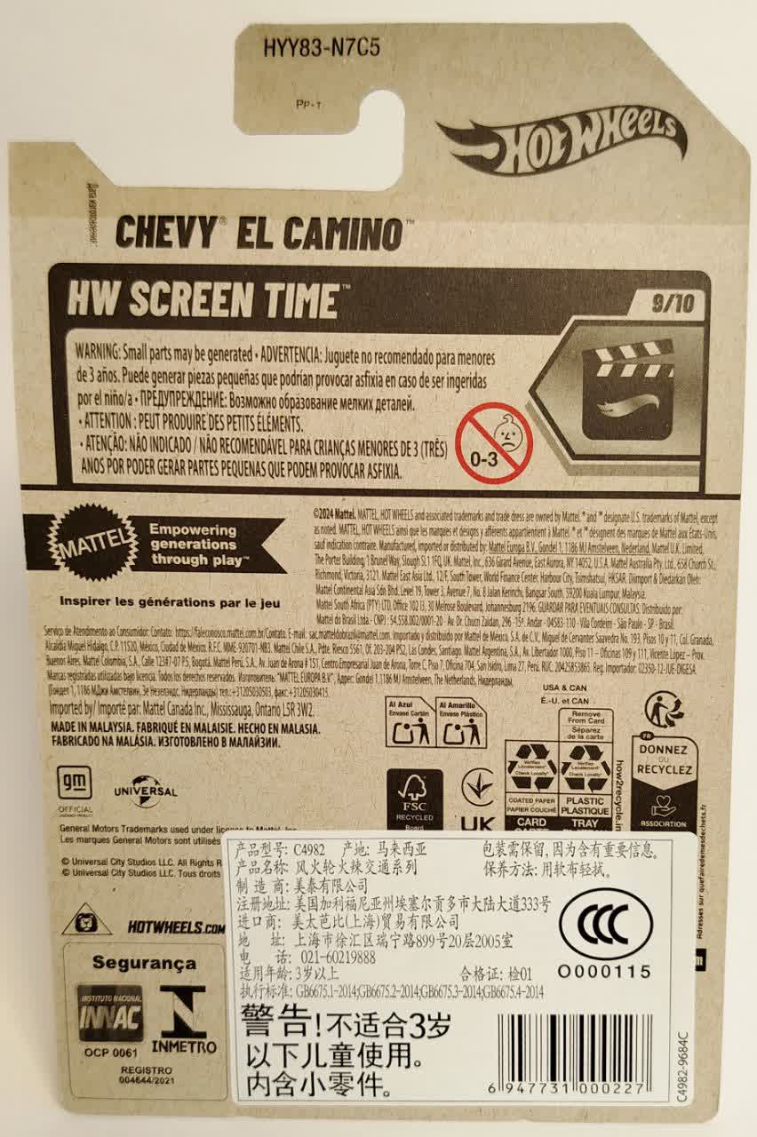 این ماشین شماره ۹ از ۱۰ در سری HW Screen Time است. این سری مخصوص خودروهایی است که در فیلمها، سریالها و بازیها حضور داشتهاند. وجود لوگوی رسمی Fast & Furious روی کارت، ارزش این مدل را برای کلکسیونرهای فیلمباز دوچندان میکند. ال کامینو در قسمتهای مختلف این فرنچایز (از جمله Fast X توسط جیکوب تورتو) رانده شده و نمادی از قدرت کلاسیک آمریکایی در برابر سوپراسپرتهای مدرن است.