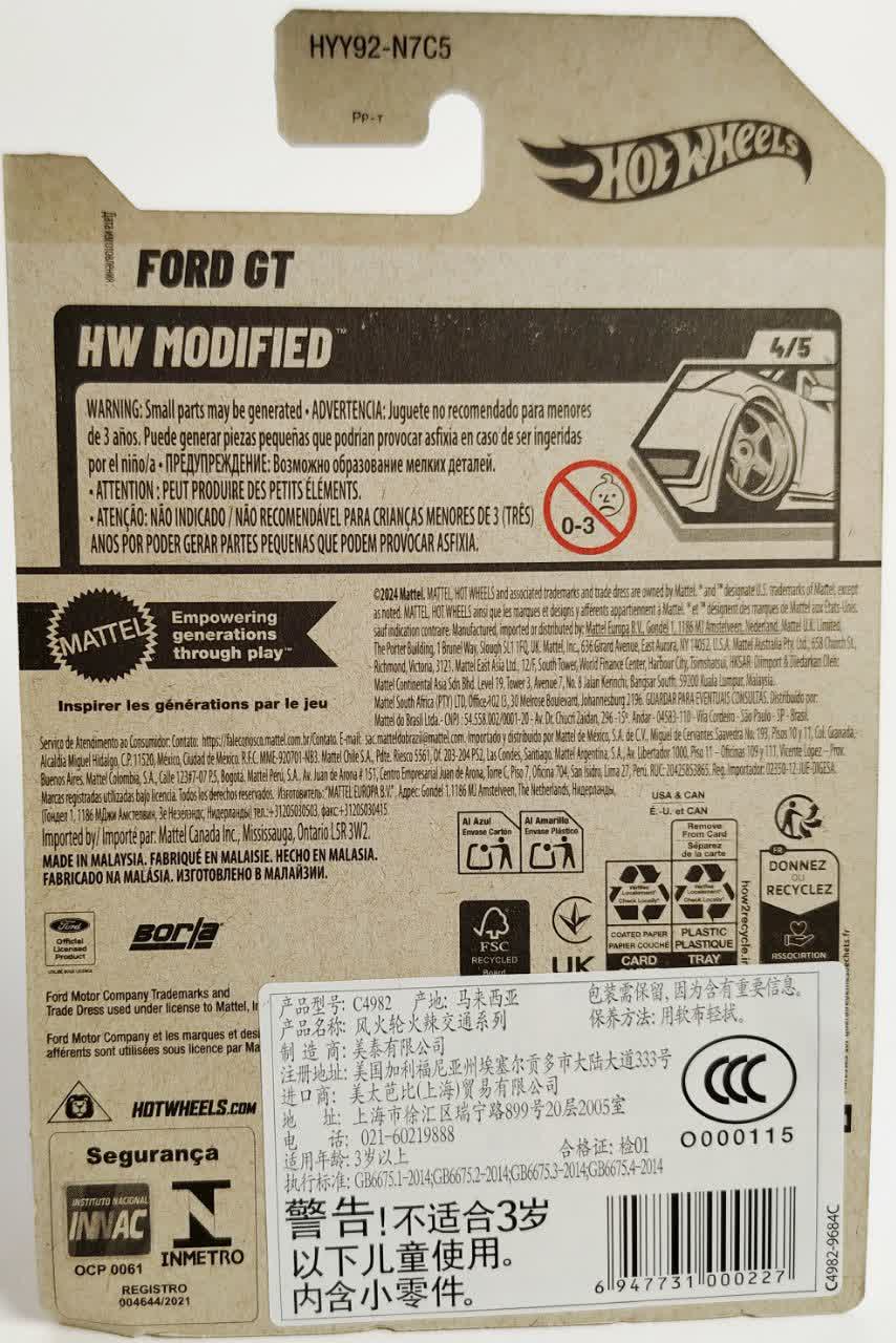این مدل شماره ۴ از ۵ در سری HW Modified است. این سری مخصوص خودروهایی است که دستخوش تغییرات فنی و ظاهری شدهاند (Modified) تا عملکرد بهتری داشته باشند. فورد جیتی با اضافه شدن قطعات آیرودینامیک و (به صورت نمادین) سیستم اگزوز بورلا، ستاره درخشان این سری محسوب میشود.