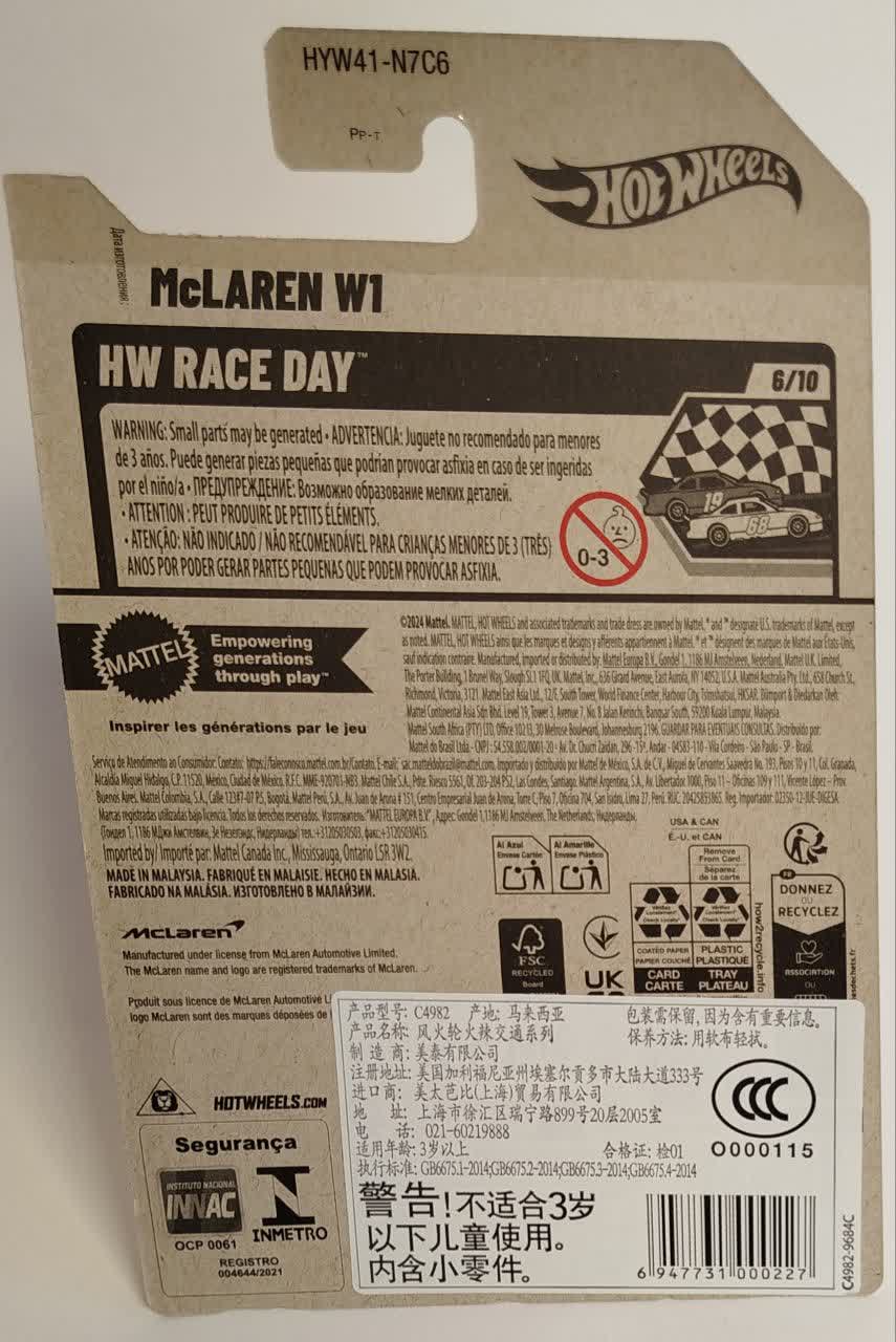 این مدل با افتخار شماره ۶ از ۱۰ در سری HW Race Day است. همانطور که از نامش پیداست، این سری مختص خودروهایی است که برای روز مسابقه ساخته شدهاند. مکلارن W1 با تکنولوژی برگرفته از فرمول یک، پادشاه این دسته است. طراحی خوابیده و عریض (Low & Wide) این ماشین باعث میشود در پیستهای هات ویلز پایداری فوقالعادهای داشته باشد و به راحتی از پیچها عبور کند.