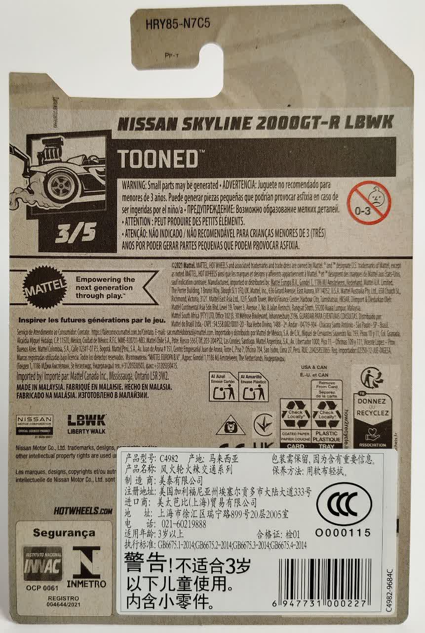 Hot Wheels Nissan Skyline 2000GT-R Lbwk Tooned 3/5 213/250
