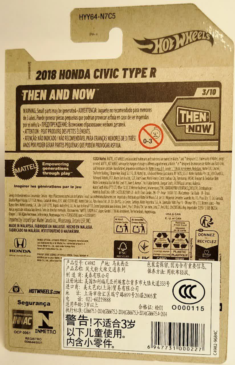 هوندا سیویک همیشه نامی قابل احترام در صنعت خودرو بوده است، اما نسخه Type R داستان متفاوتی دارد؛ داستانی از رکوردشکنی در پیست نوربرگرینگ و هیجان خالص رانندگی. محصولی که پیش روی شماست، Hot Wheels 2018 Honda Civic Type R است که با کد مدل و شماره ساخت ۱۲۳/۲۵۰ عرضه شده است. این ماشین فلزی یکی از دقیقترین قالبگیریهای هات ویلز در کلاس خودروهای کامپکت اسپرت محسوب میشود.