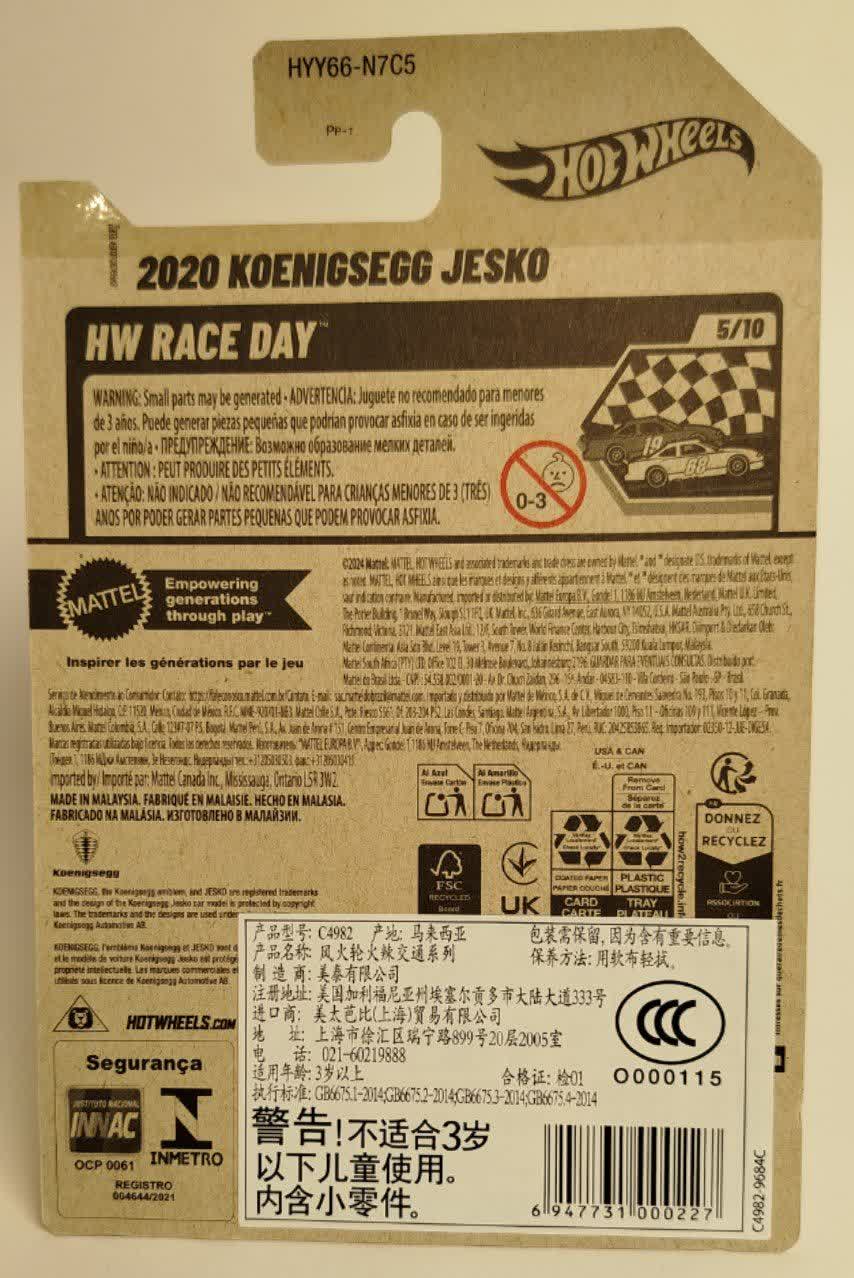 این مدل عضوی از خانواده HW Race Day است. همانطور که از نامش پیداست، این سری مخصوص خودروهایی است که برای روز مسابقه آماده شدهاند. کونیگزگ جسکو با طراحی آیرودینامیک و ارتفاع پایین خود، یکی از بهترین عملکردها را در پیستهای جاذبهای هات ویلز دارد. تعادل عالی و وزن مناسب بدنه دایکست، باعث میشود این ماشین در پیچها و لوپها پایداری خود را حفظ کند.