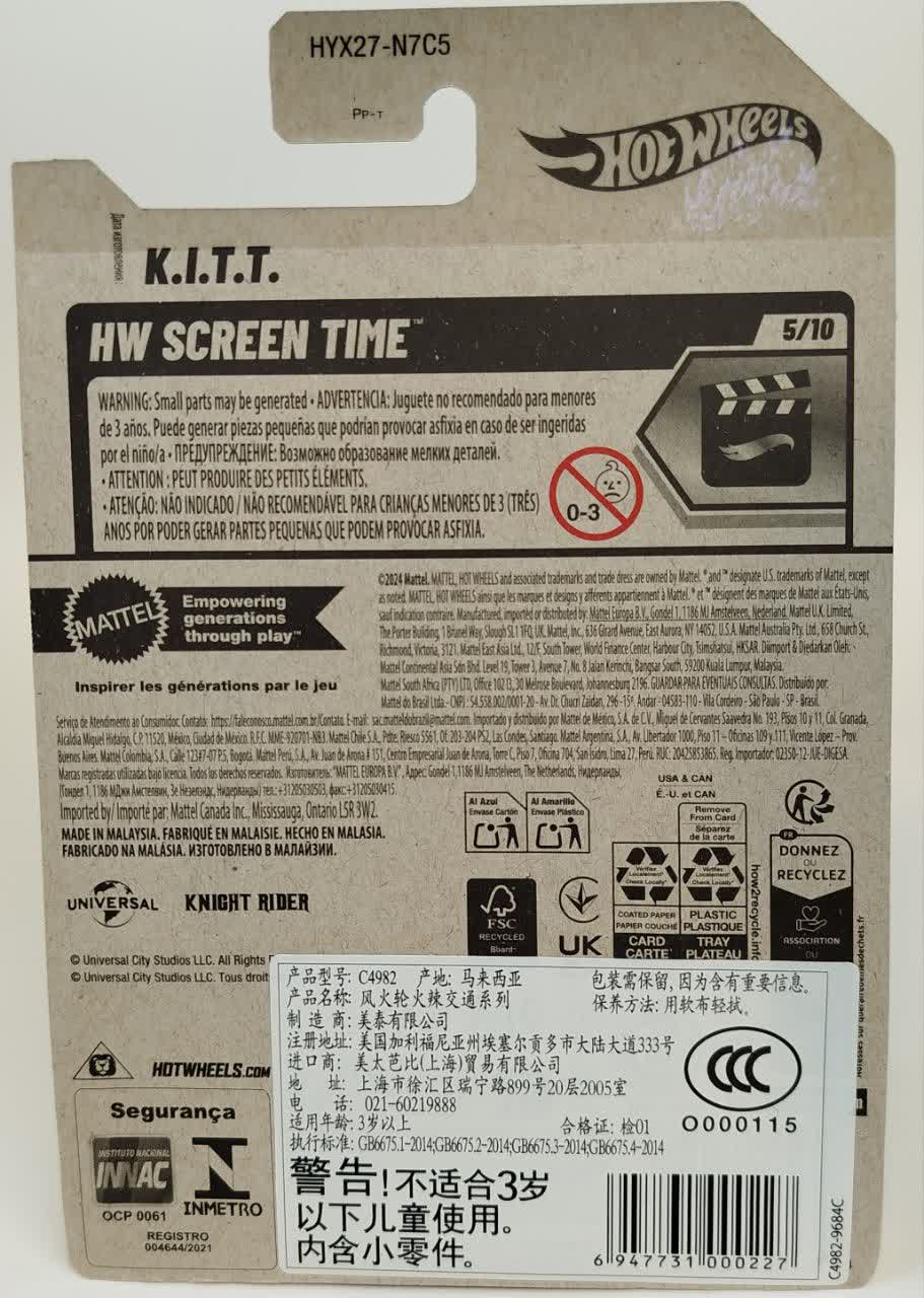 این مدل شماره ۵ از ۱۰ در سری HW Screen Time است. این سری یکی از محبوبترین خطوط تولید هات ویلز است که به بازسازی خودروهای مشهور فیلمها، سریالها و بازیهای ویدئویی اختصاص دارد. حضور K.I.T.T. در این سری همیشگی است، اما نسخههای دارای گرافیک خاص مثل این مدل، تنوع جذابی به کلکسیون ماشینهای سینمایی میبخشند.
