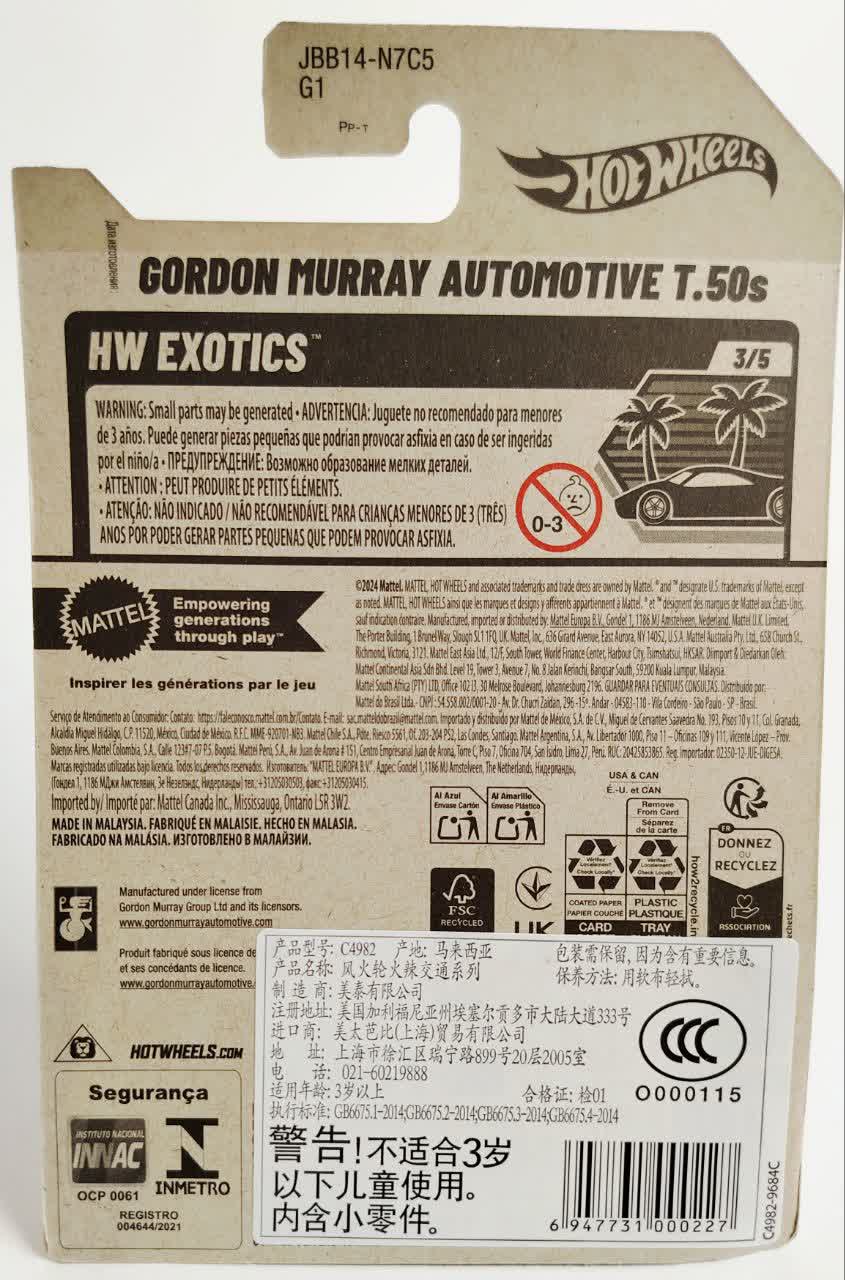 Hot Wheels Gordon Murray Automotive T.50S HW Exotics 3/5 190/250