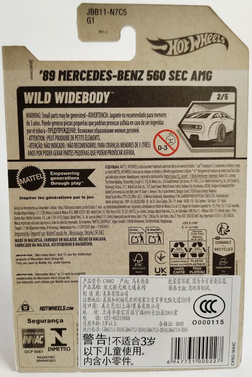 Hot Wheels 89 Mercedes Benz 560 Sec Amg Wild Widebody 2/5 186/250