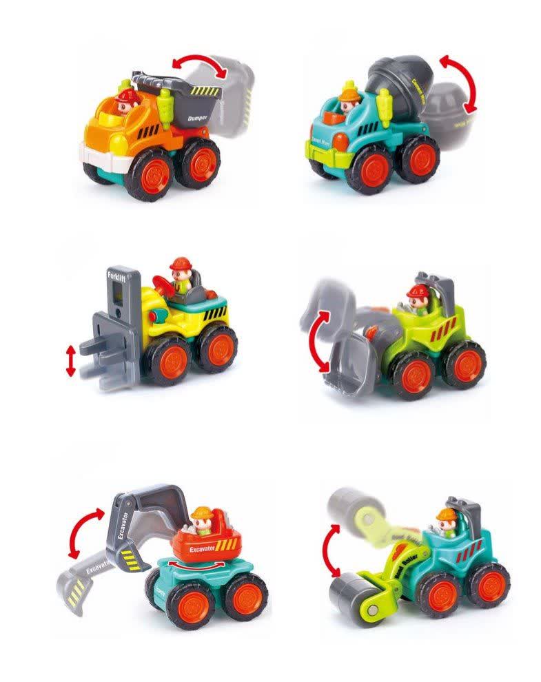 این مجموعه شامل ۶ عدد ماشین فشاری هولا تویز با طراحیهای متفاوت در سبکهای رایج مانند کامیون، تراکتور، لودر، بولدوزر، کامیون حمل بار و بیلبردار کوچک میباشد که هر یک بدون باتری و با مکانیزم فشاری فعالیت میکند.