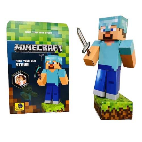 ماکت مقوایی ماینکرفت استیو Minecraft Steve یک پکیج کاردستی نوآورانه و جذاب برای تمامی طرفداران دنیای بی‌پایان ماینکرفت است. این محصول، به شما اجازه می‌دهد بدون نیاز به چسب یا قیچی، یک فیگور سه‌بعدی از شخصیت محبوب "استیو ماینکرفت" بسازید. این ماکت پس از سرهم شدن دارای ارتفاع ۲۳.۵ سانتی‌متر بوده و شامل تمام تجهیزات نمادین استیو از جمله کلاه محافظ و کلنگ الماسی است. استفاده از مکانیزم قفل‌شونده (Fold & Lock) تجربه‌ای ایمن و لذت‌بخش را برای کودکان بالای ۷ سال فراهم می‌کند. این محصول نه تنها یک سرگرمی آموزشی است، بلکه به عنوان یک اکسسوری دکوری خاص در اتاق گیمینگ نیز جلوه‌ای بی‌نظیر دارد.