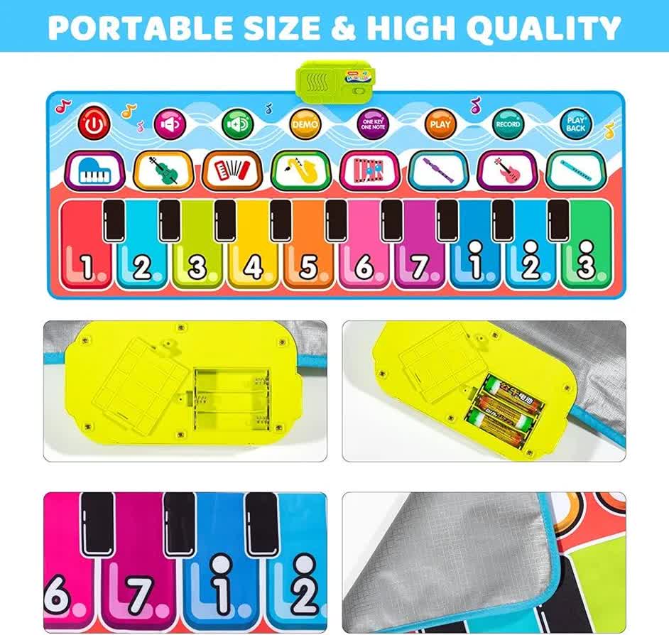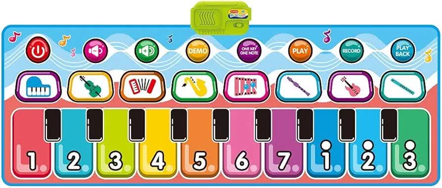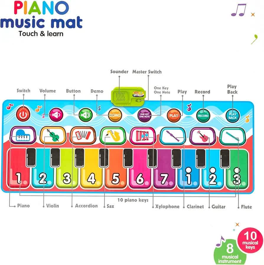 مت پیانو موزیکال Piano Music Mat D757-01A یک اسباببازی هوشمند و تعاملی است که دنیای موسیقی را به شکلی لمسی و پرتحرک به کودکان معرفی میکند. این تشک موزیکال با طراحی رنگارنگ و کلیدهای بزرگ عددی، کودکان بالای ۳ سال را تشویق میکند تا با استفاده از دستها و پاهای خود آهنگ بسازند و تحرک بدنی داشته باشند. این سفره موزیکال شامل ۸ صدای ساز مختلف از جمله ویولن، گیتار و ساکسیفون است که به رشد شنوایی و خلاقیت کودک کمک میکند. قابلیت ضبط (Record) و پخش مجدد ملودیها، اعتماد به نفس کودک را در خلق اثر هنری تقویت کرده و محیطی شاد و آموزشی را در خانه فراهم میسازد.