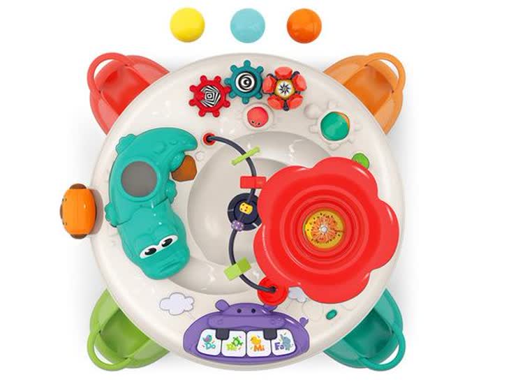- سه بازی توپ تعاملی: میز شامل سه مسیر توپ داخلی است که کودک میتواند توپها را پرتاب کند یا بچرخاند تا تعامل فیزیکی و منظرۀ دید را تجربه کند.